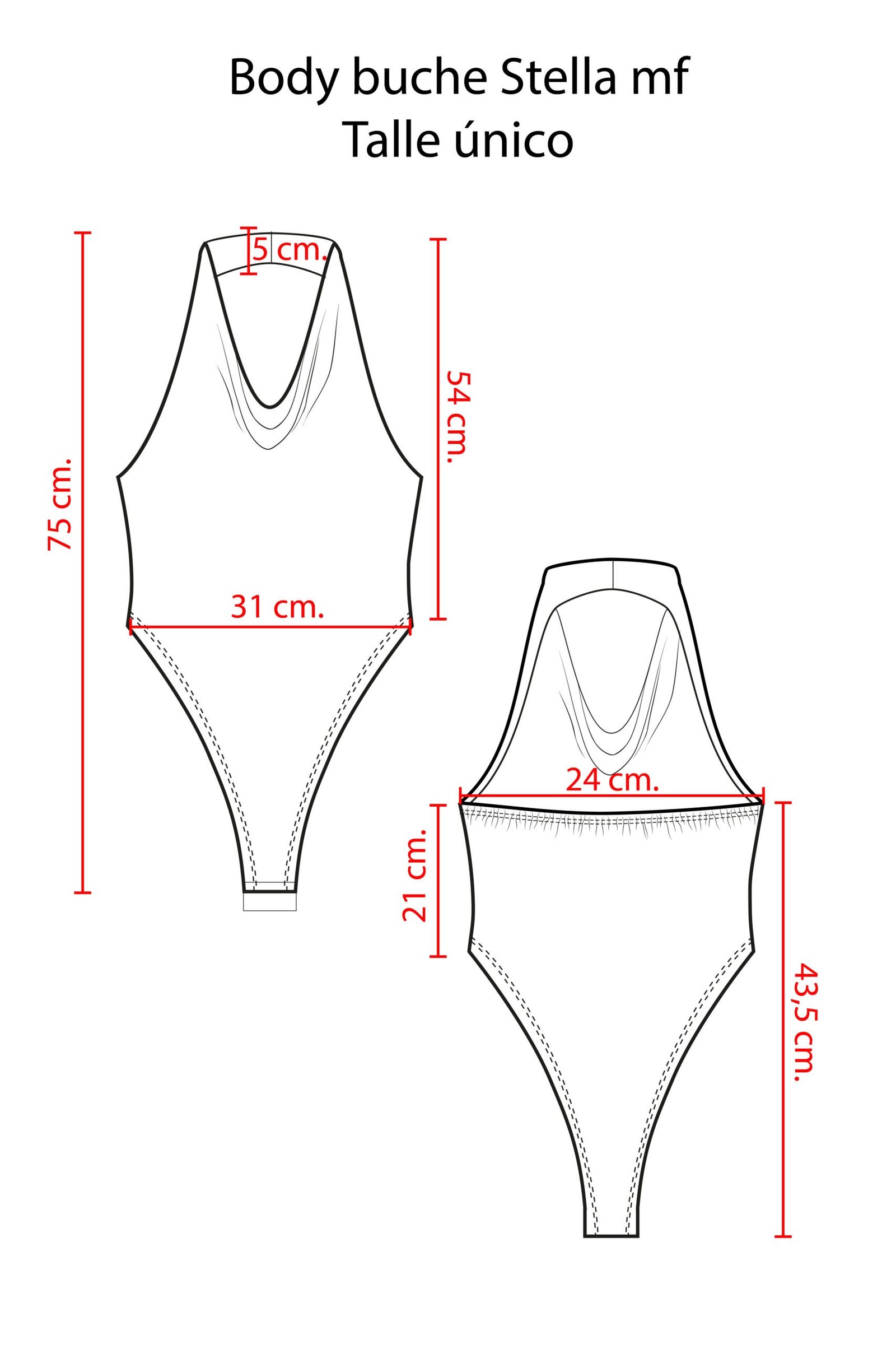 Body de microfibra, escote al cuello con buche en el delantero. Tiene doble tela en la parte del busto y broches en el tiro para facil acceso 🙂 Talle único, medidas en la última imagen.