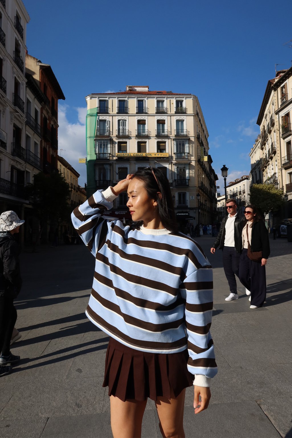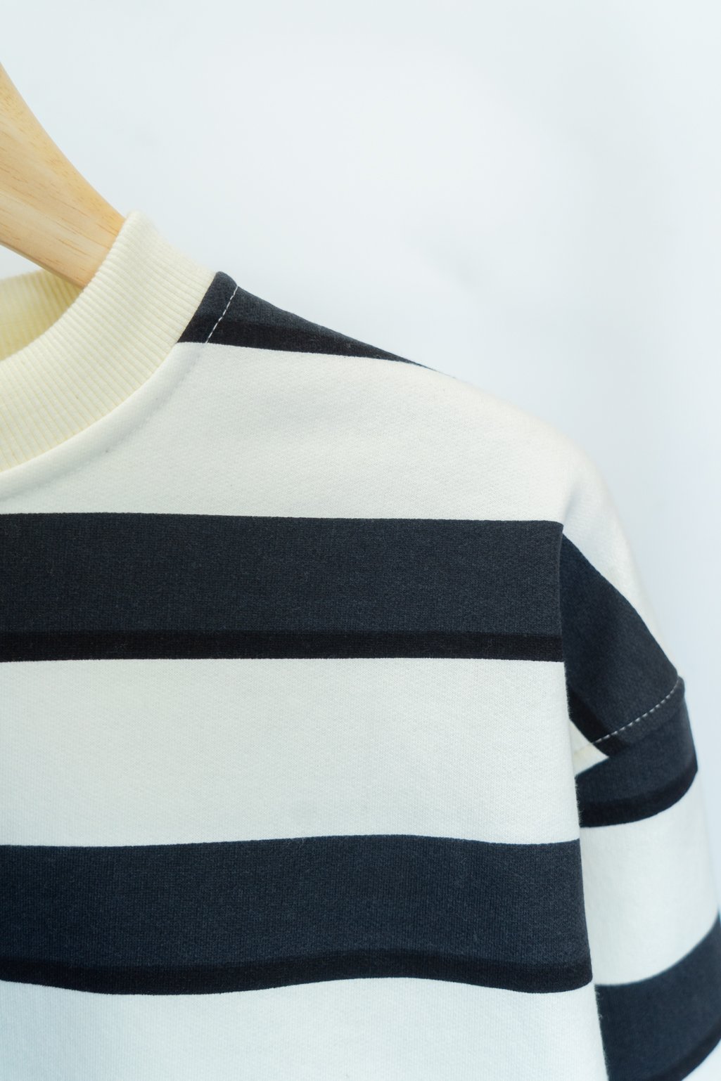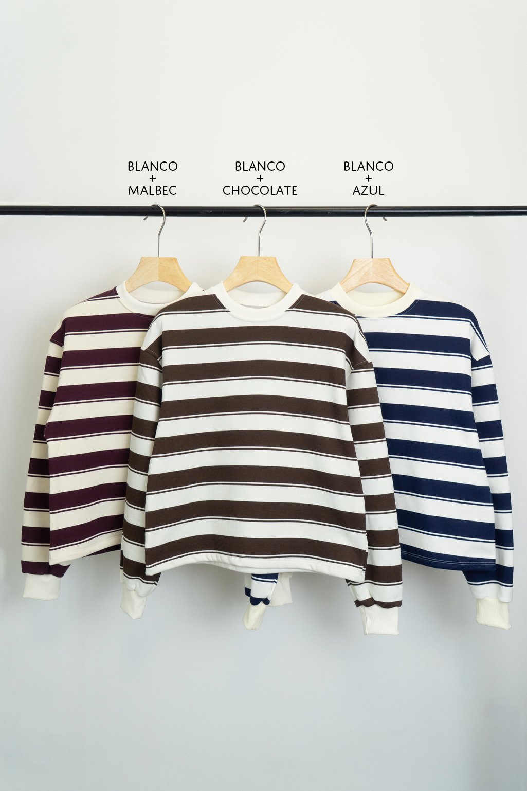 Buzo de friza cuello redondo con estampa de rayas en 3 colores. Un estampado muy canchero que no puede faltar en tu colección! ❤️ Talle único.