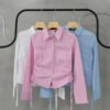 Camisa entallada con frunces a los costados. Calce perfecto al cuerpo, entallada con pinzas y los frunces de los laterales que se pueden regular a gusto ❤️ Disponible en talle S y M.