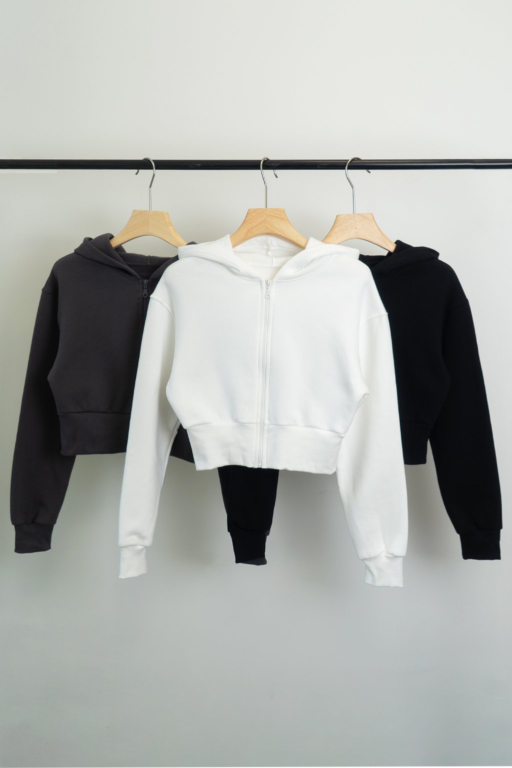 Campera de friza corta con cintura ancha que se adapta al cuerpo. Tiene capucha, bolsillos y cierre a tono 🙂 Talle único.