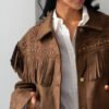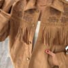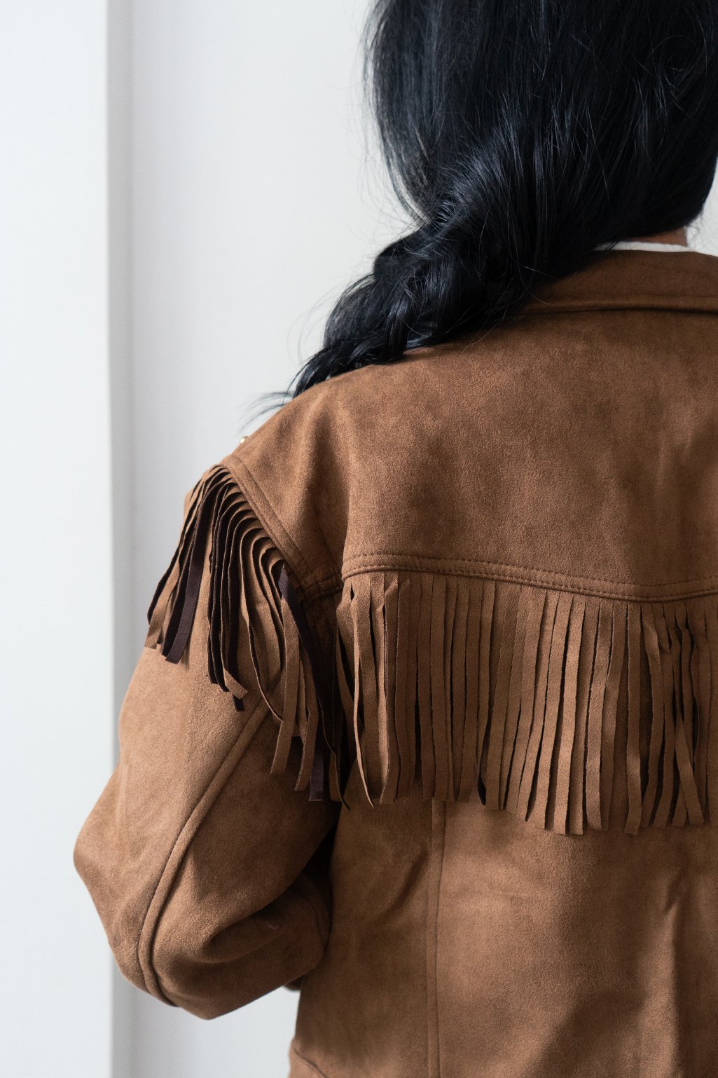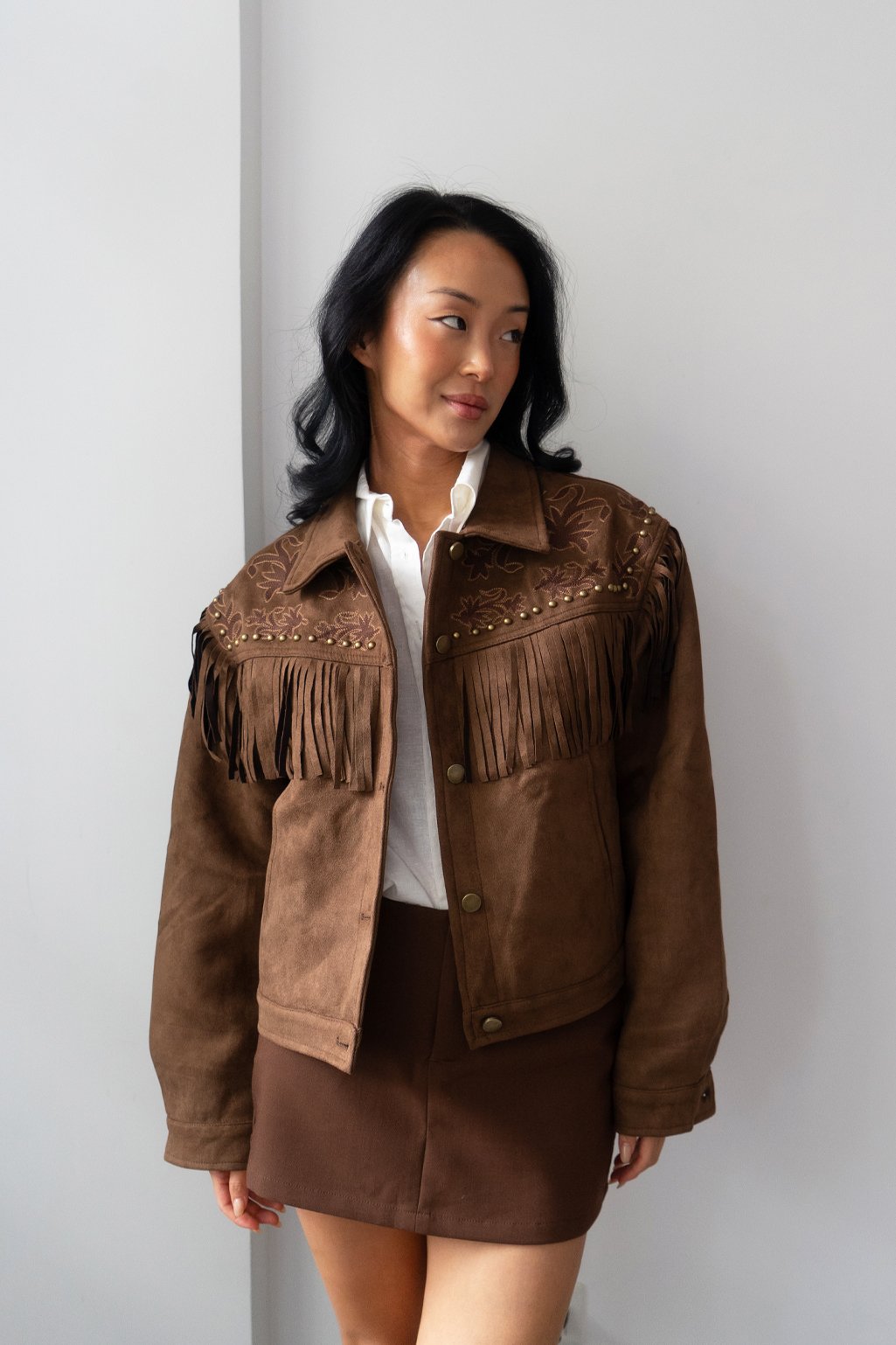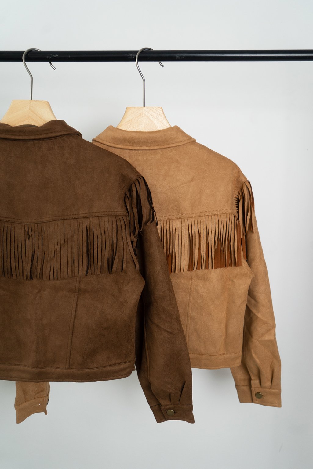 Campera de gamuza con flecos y bordado, de estilo boho chic. Un modelo con mucho carácter y detalles que la hacen única. Ideal para levantar cualquier look.