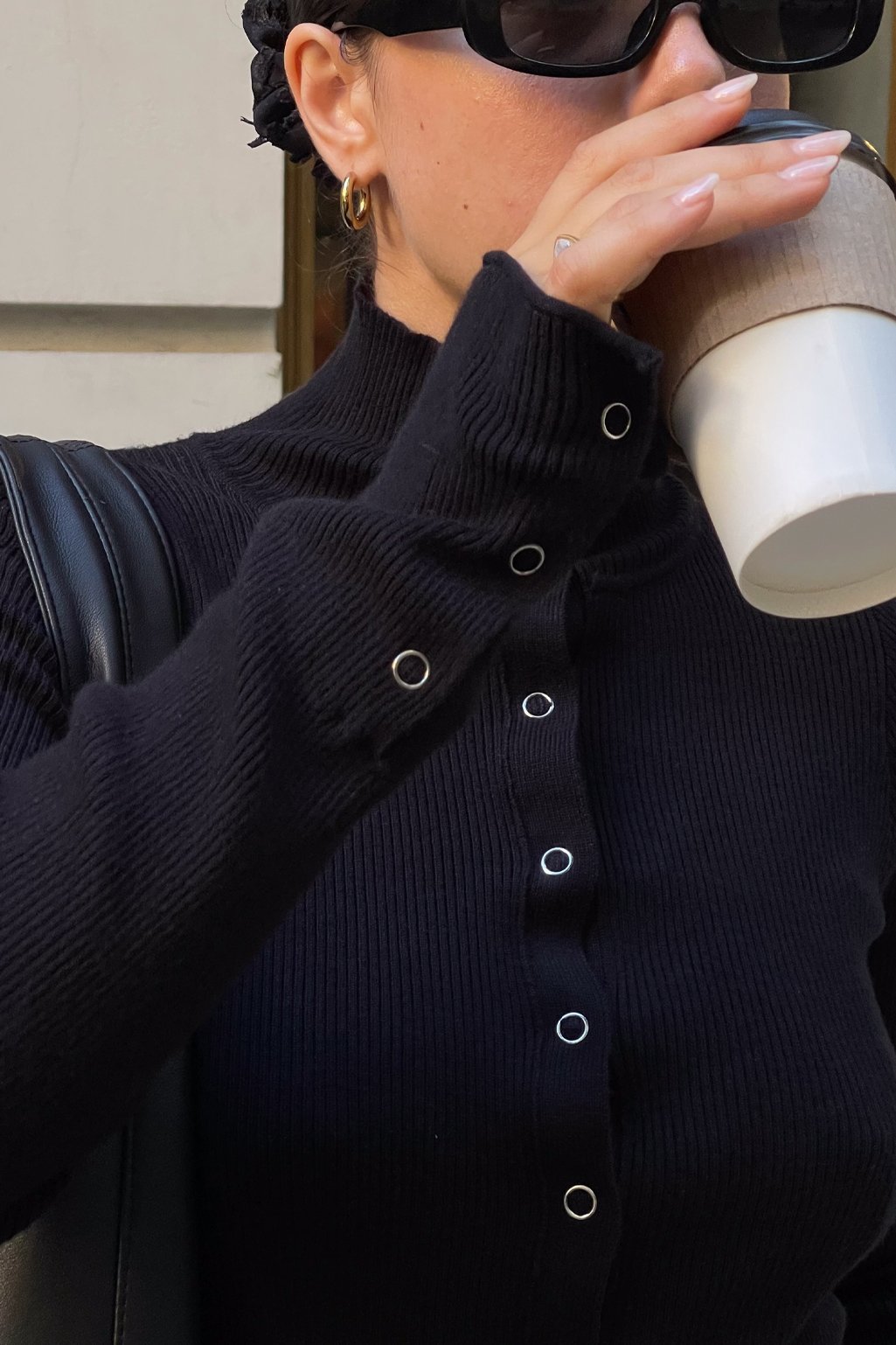 Cardigan al cuerpo con broches metalicos en el frente y en las mangas. Cuello alto que se puede usar prendido o abierto, que también queda muy canchero ✨ Un básico para todos los días. Talle único.