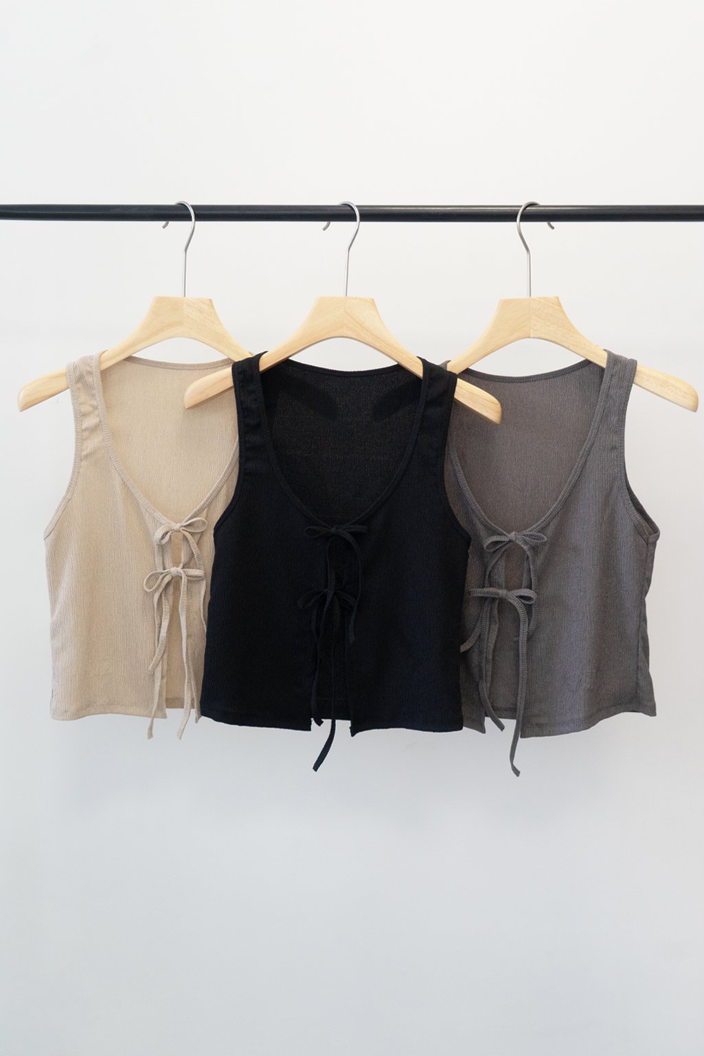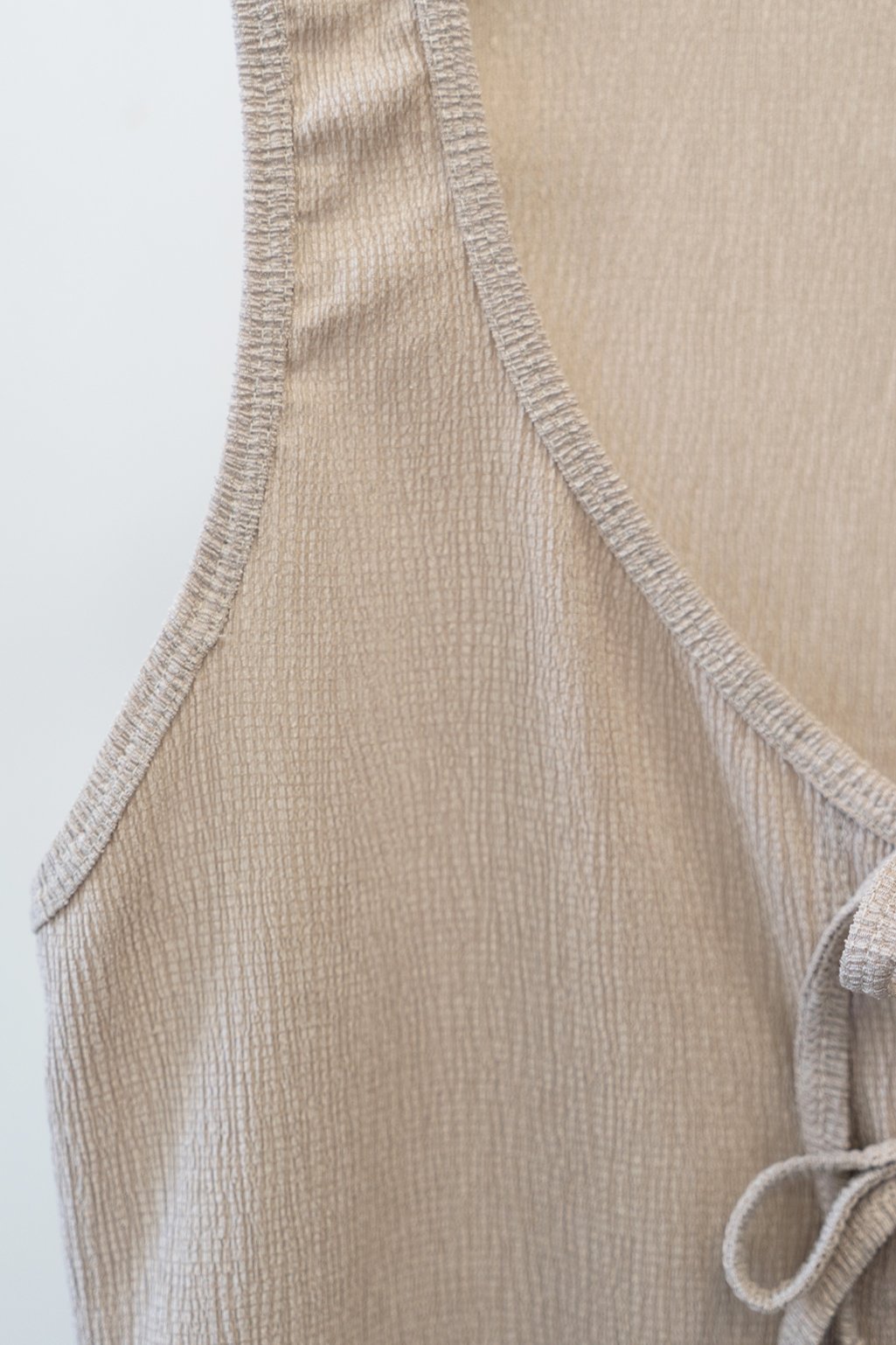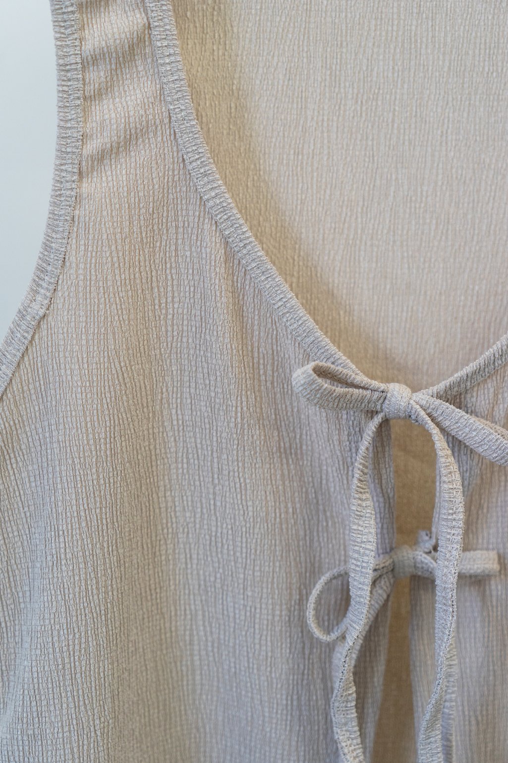 Chaleco de bambula Chamberlain con lazos para atar en el frente. Diseño delicado ideal para el día o la noche ✨ Talle único.