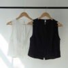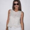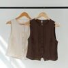 Chaleco sastrero con escote redondo. Tiene pinzas en busto, cintura y espalda lo que hace que tenga un calce perfecto! La tela es súper fresca y liviana. Disponible en talle 1 y 2, medidas en la última imagen.