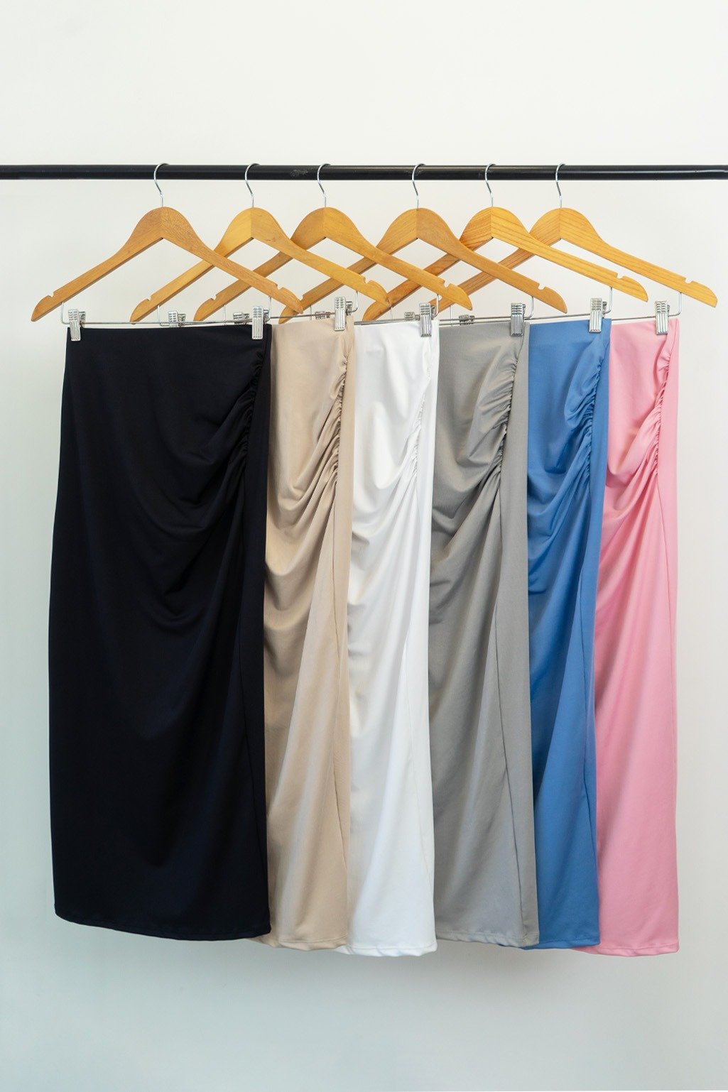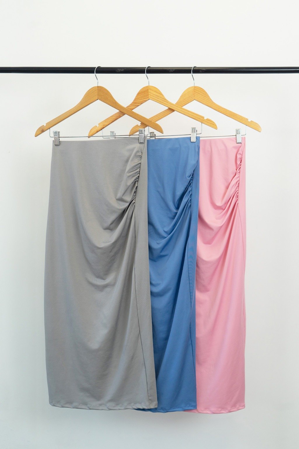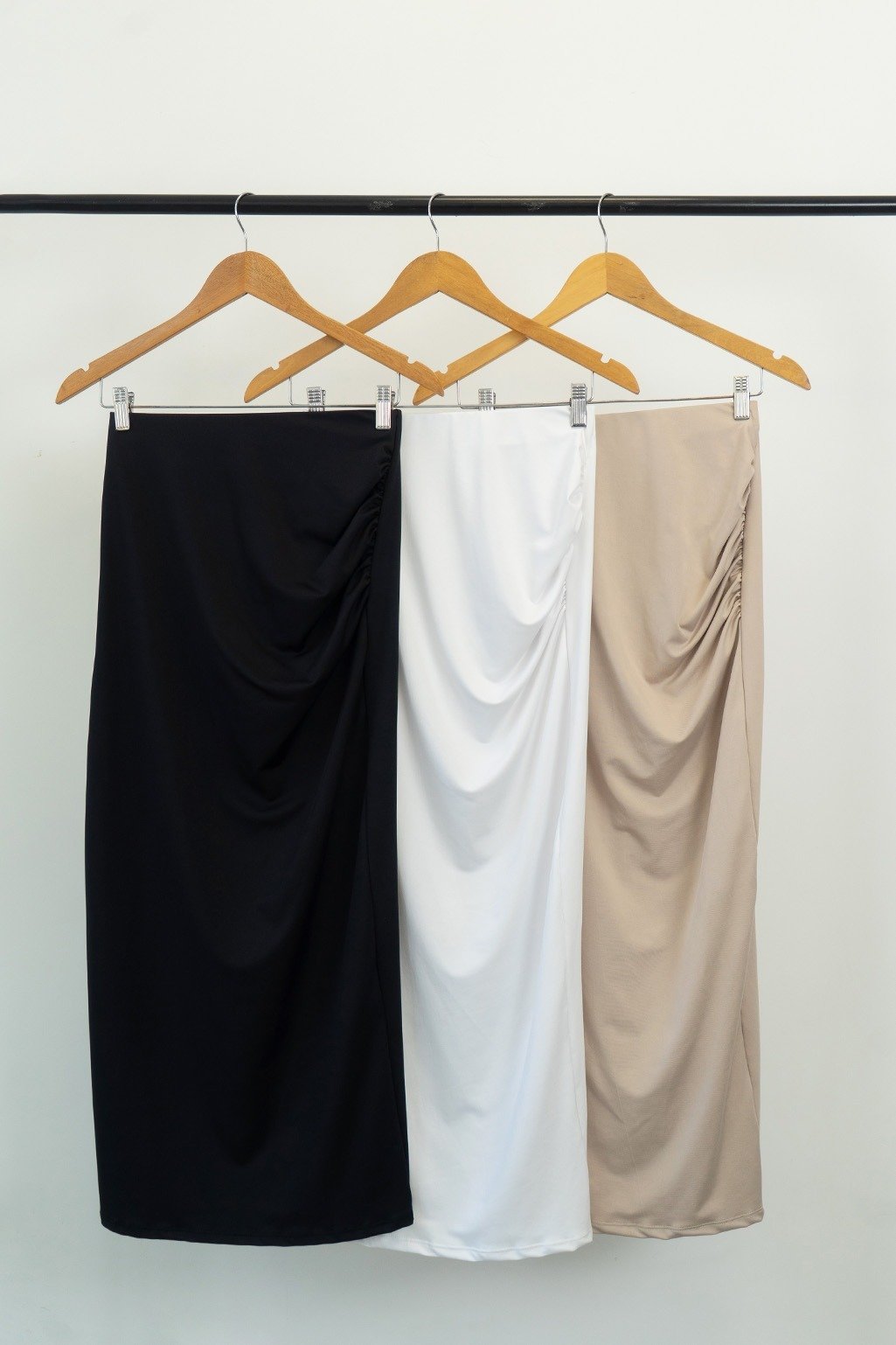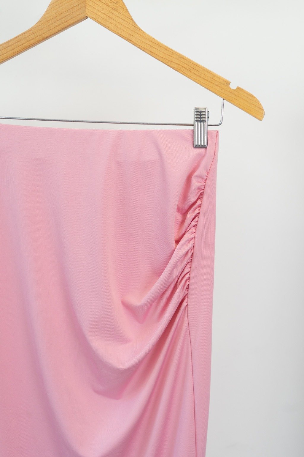 Falda larga de microfibra. Tiene frunce en un lateral, elástico en la cintura y tajo en la parte trasera. Arma tu set monocromo con el top bote Belle ❤️ Talle único, medidas en la última imagen.