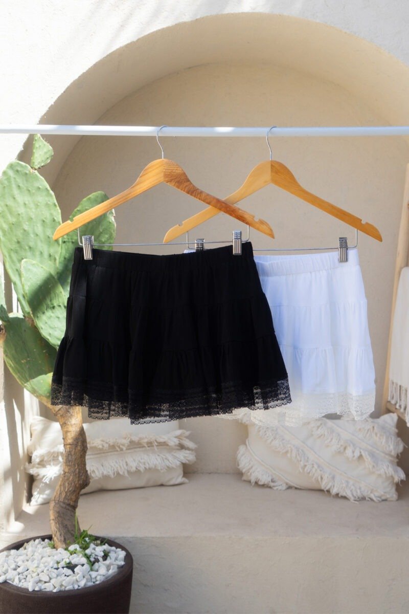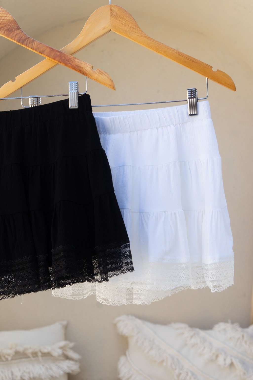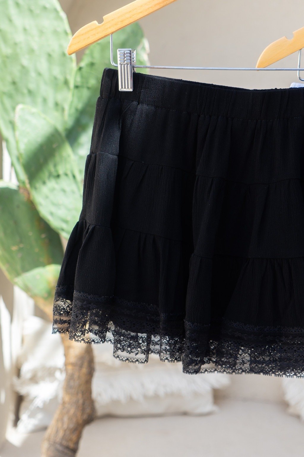 Minifalda escalonada con terminación en puntilla de encaje a tono. Tiene forrería lo que hace que no transparente ❤️ Disponible en talle S y M, medidas en la última imagen.