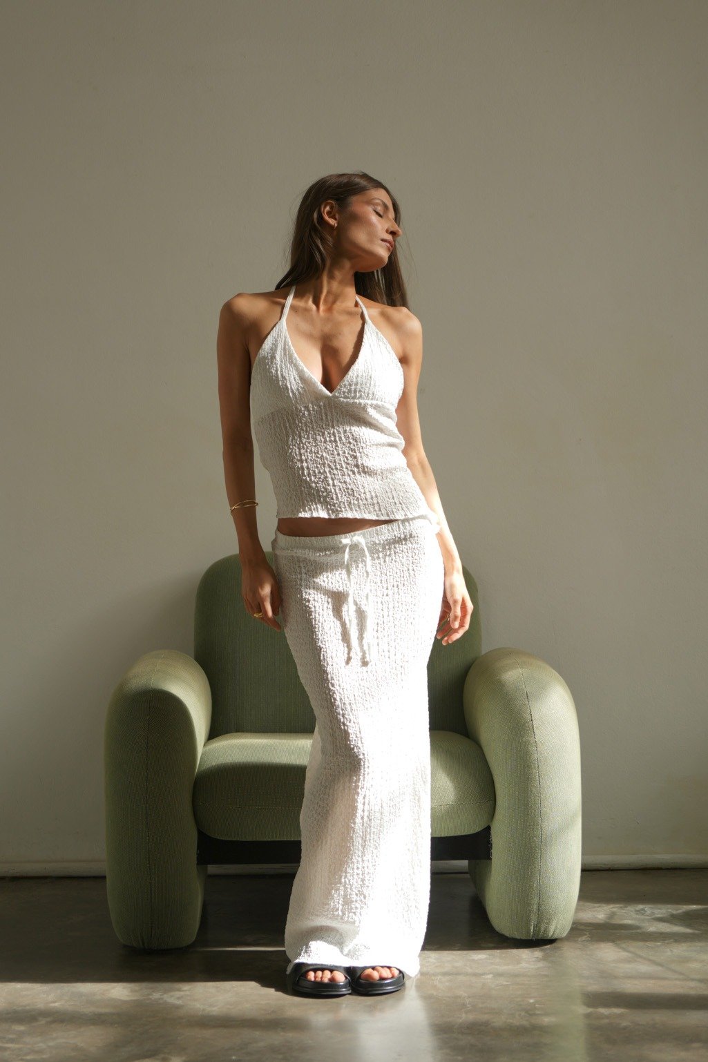 Falda larga de bambula Hawai. Tela con textura muy veraniega, súper elastizada, con los colores tendencia de la temporada! Tiene elástico en la cintura y tajo en la parte de atrás. Disponible en talle 1 y 2, medidas en la última imagen.