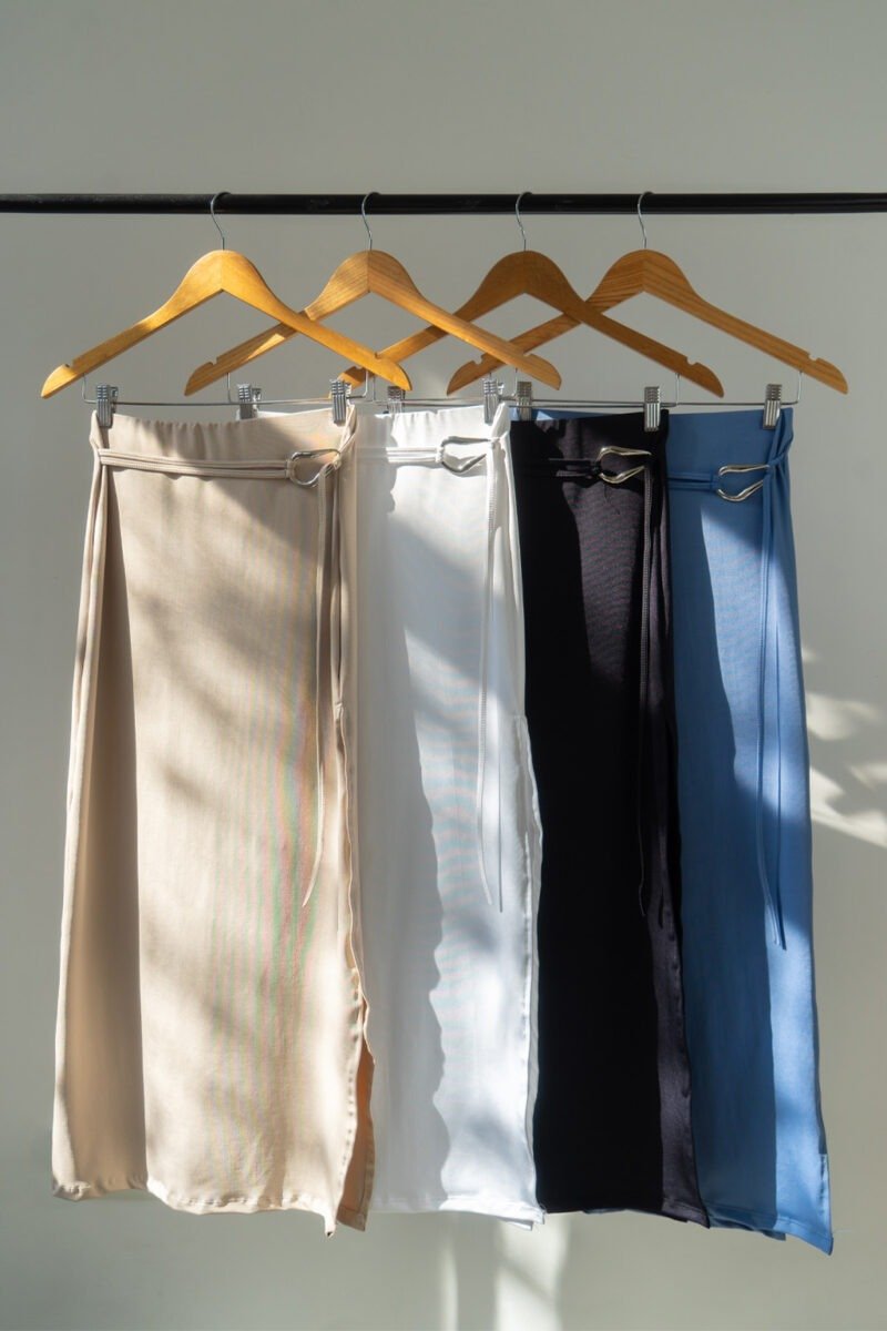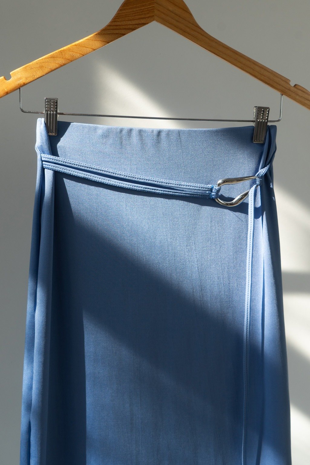 Falda larga de microfibra, detalle de cinto con aplique plateado en la cintura. Tiene elástico en la cintura y tajo en uno de los laterales ✨ Talle único, medidas en la última imagen.