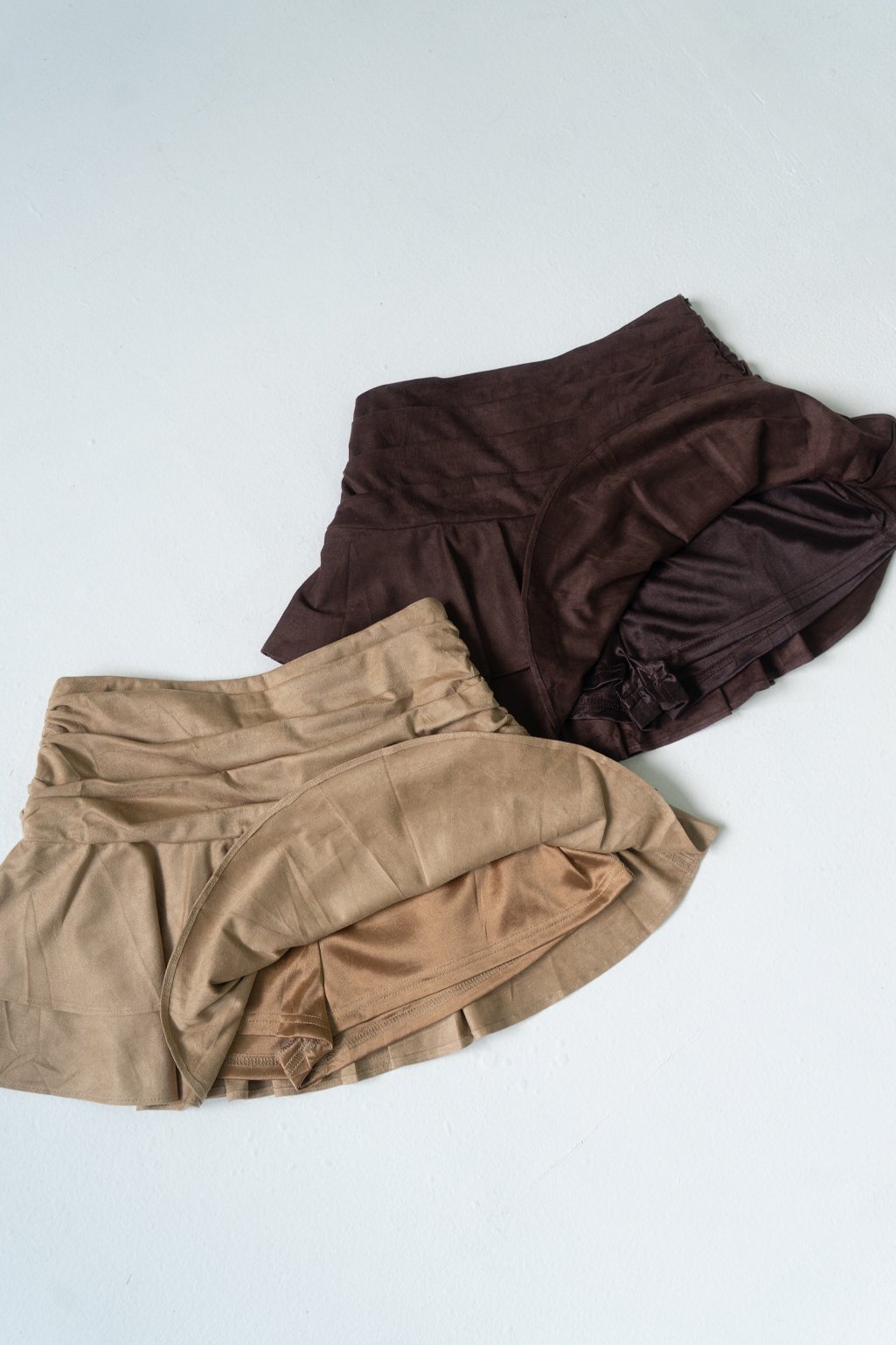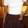 Minifalda de gamuza con volados y cintura ancha con frunces. Tiene short interno para más comodidad! Acceso por cierre invisible a tono en el lateral ❤️ Disponible en talle S y M.