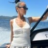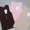 Musculosa tejida larga con escote en V. Tiene botones de nacar en el frente, un detalle súper delicado <3 Tejido acanalado muy elastizado. Medidas de la prenda (sin estirar) en la última imagen.