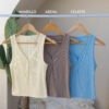 Musculosa escote en V con botones, confeccionada en morley tao. La reversión de nuestra clásica remera de morley ahora para tu colección de verano ✨ Talle único, medidas en la última imagen.