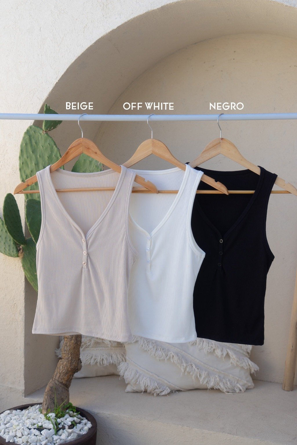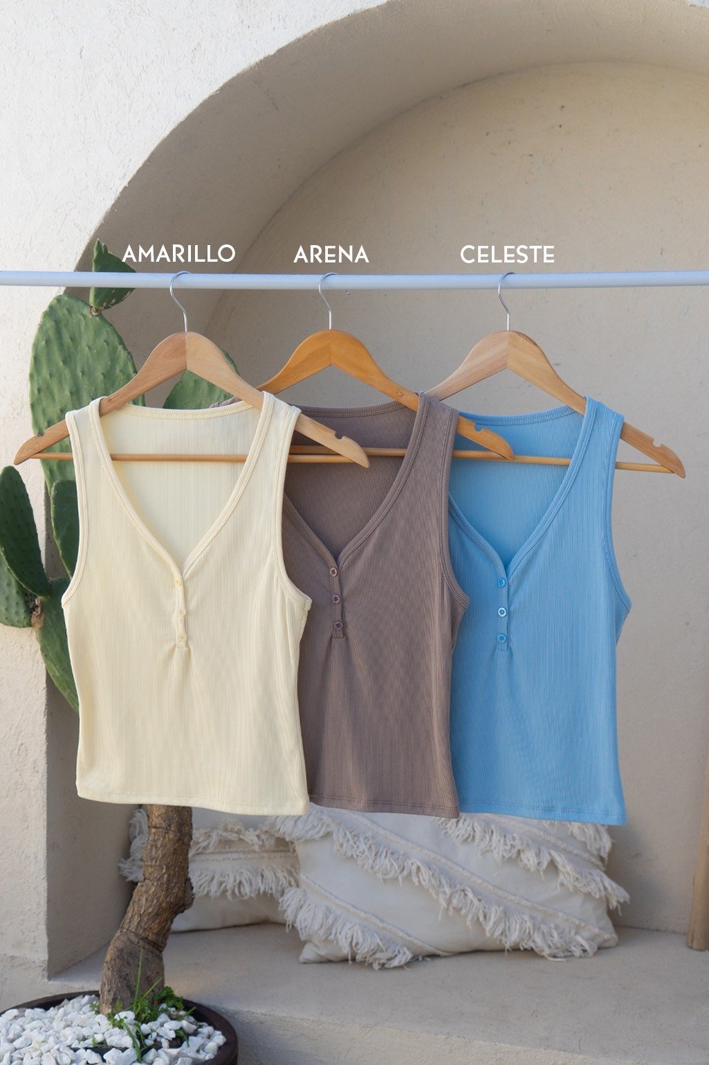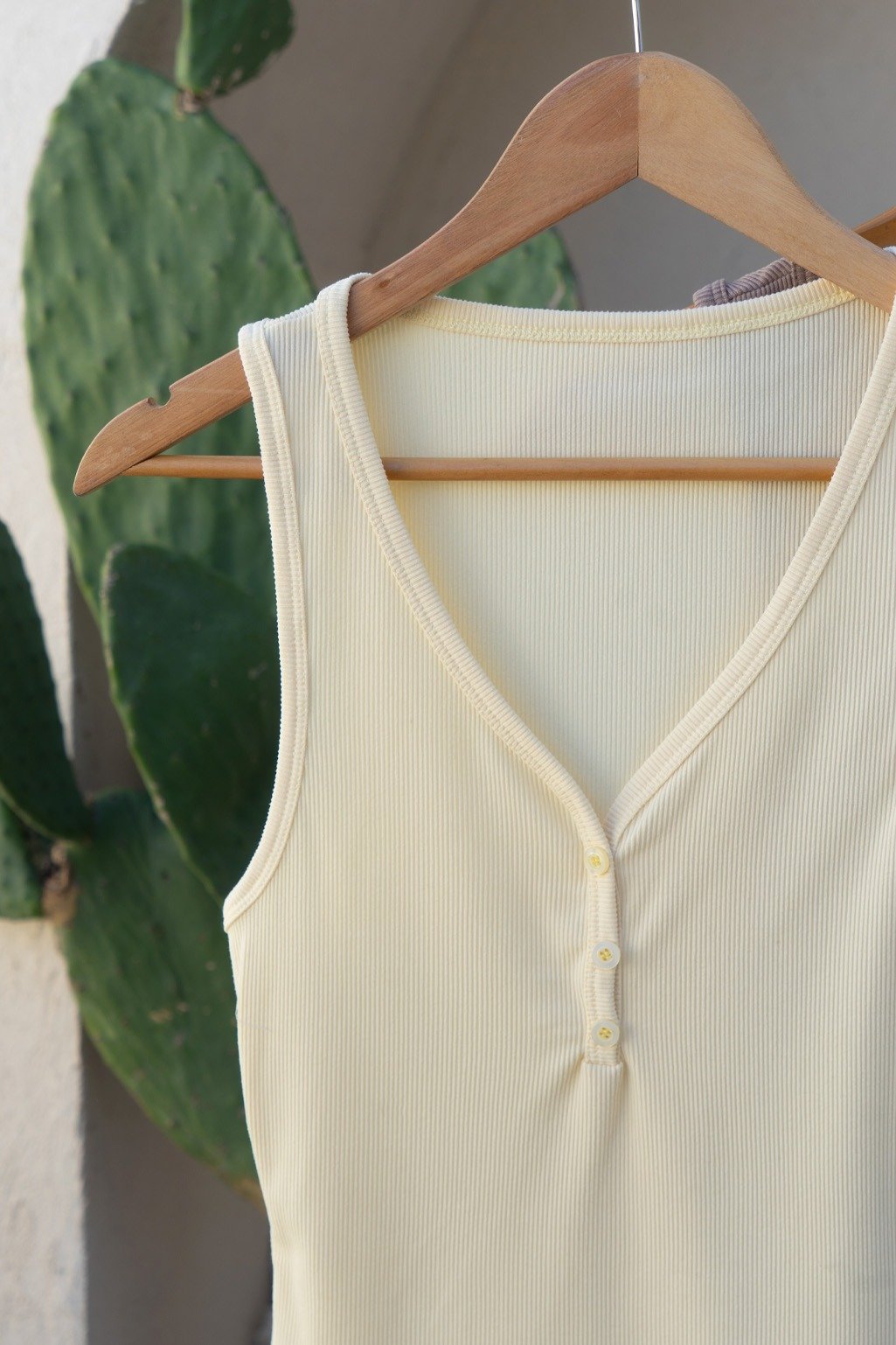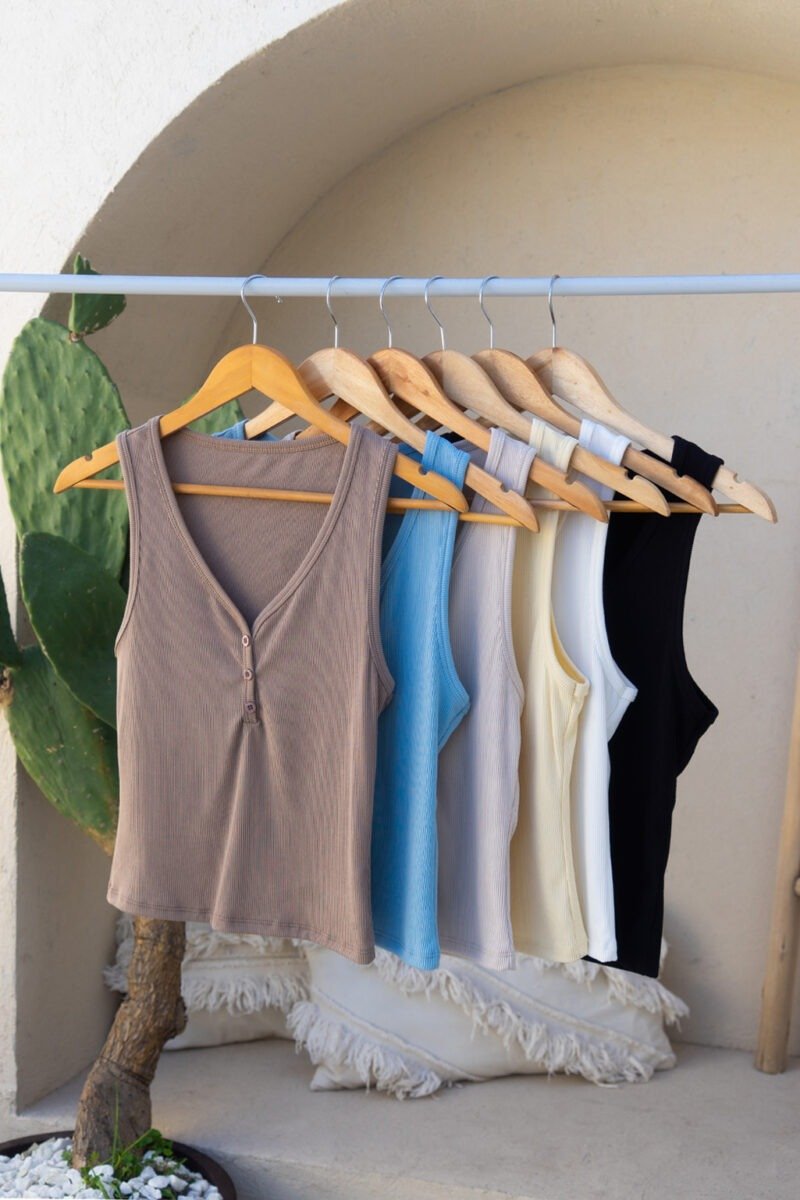 Musculosa escote en V con botones, confeccionada en morley tao. La reversión de nuestra clásica remera de morley ahora para tu colección de verano ✨ Talle único, medidas en la última imagen.