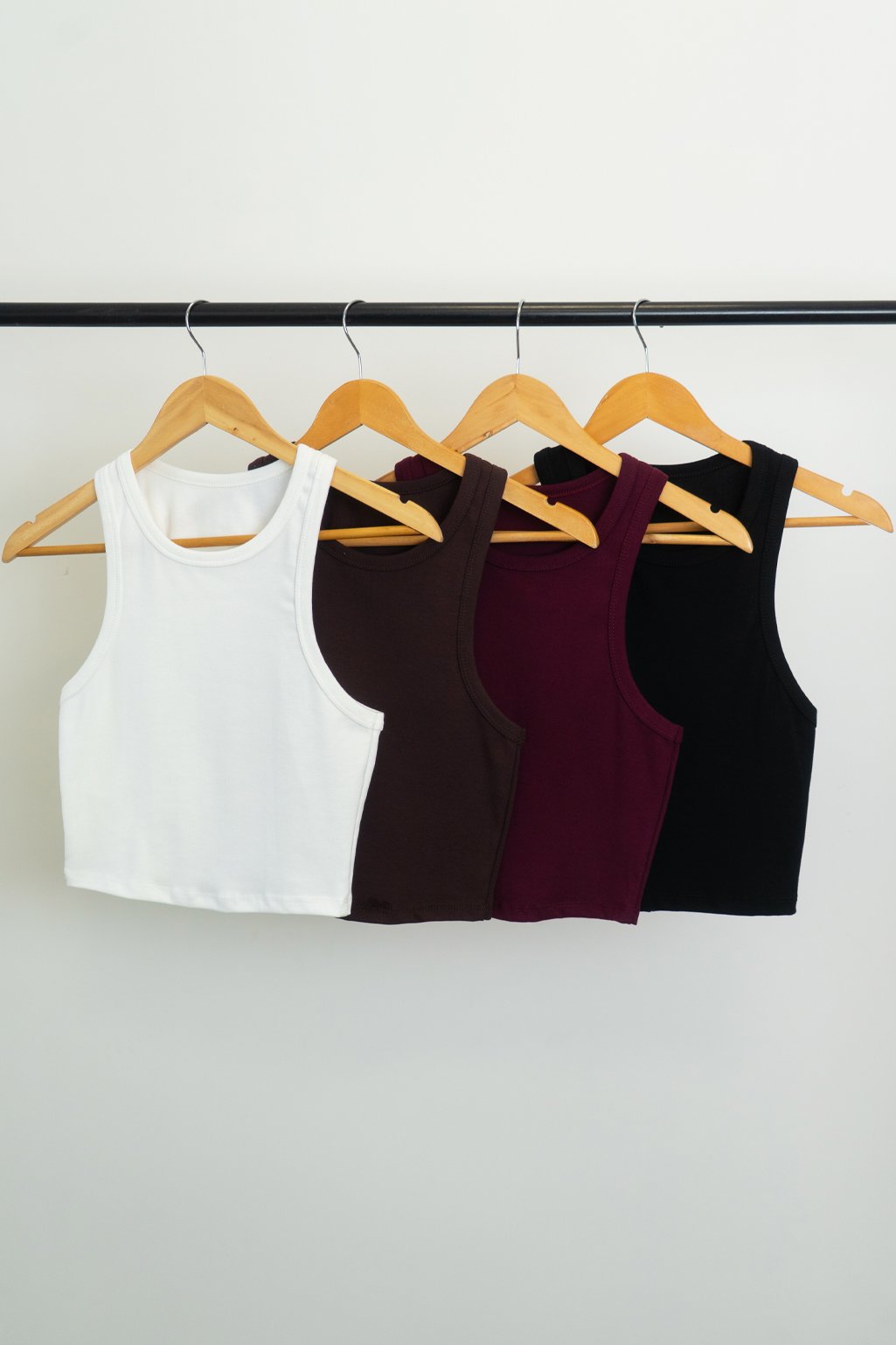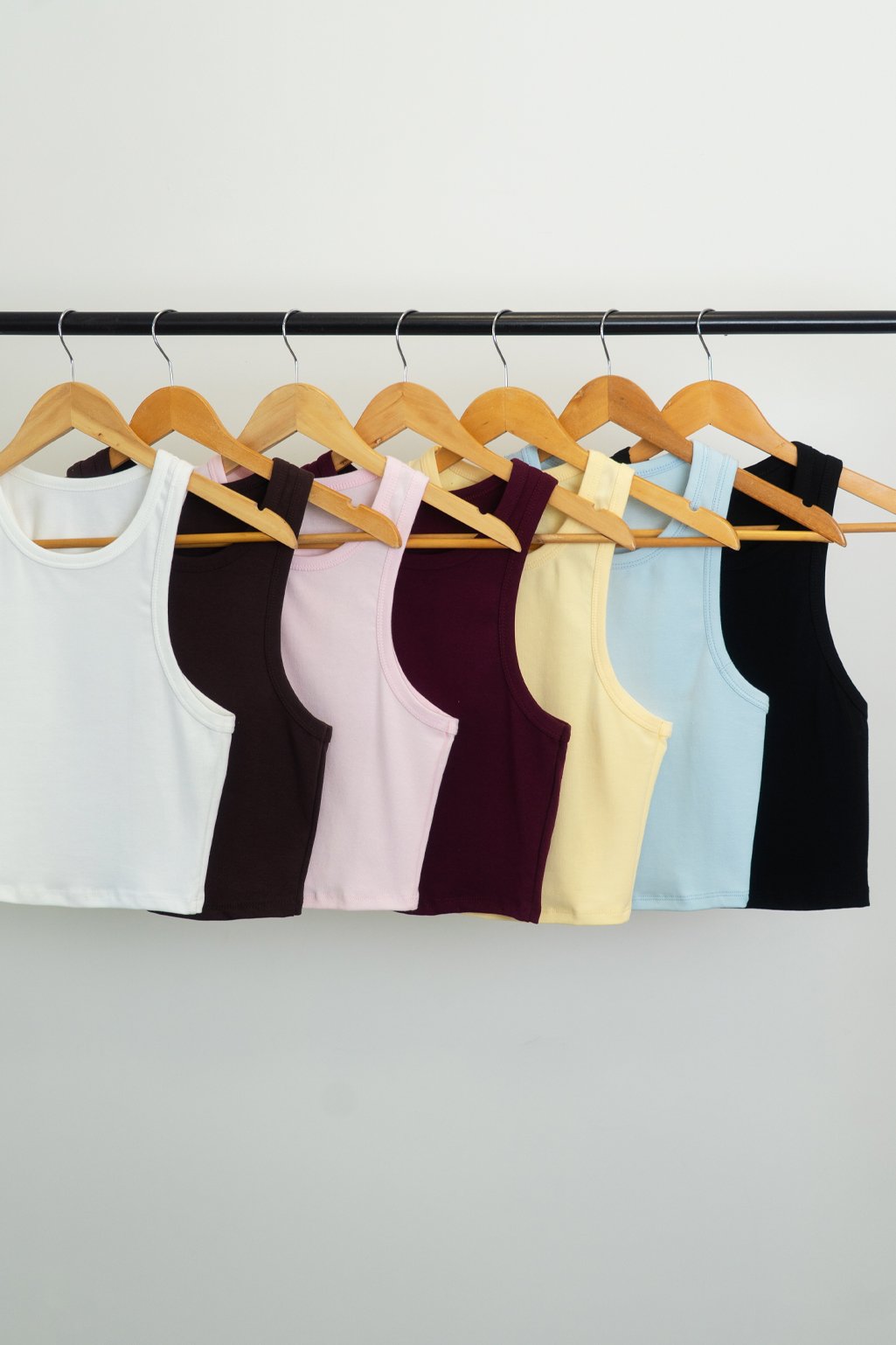 Musculosa crop lisa de ribb de algodón. Un básico atemporal que no te puede faltar en tu colección 🙂 Talle único.