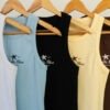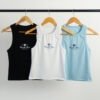 Musculosa de ribb con estampa en el frente. Tiene escote redondo y terminaciones en collareta en cuello y sisa. El básico que usas todo el verano ❤️ Talle único, medidas en la última imagen.