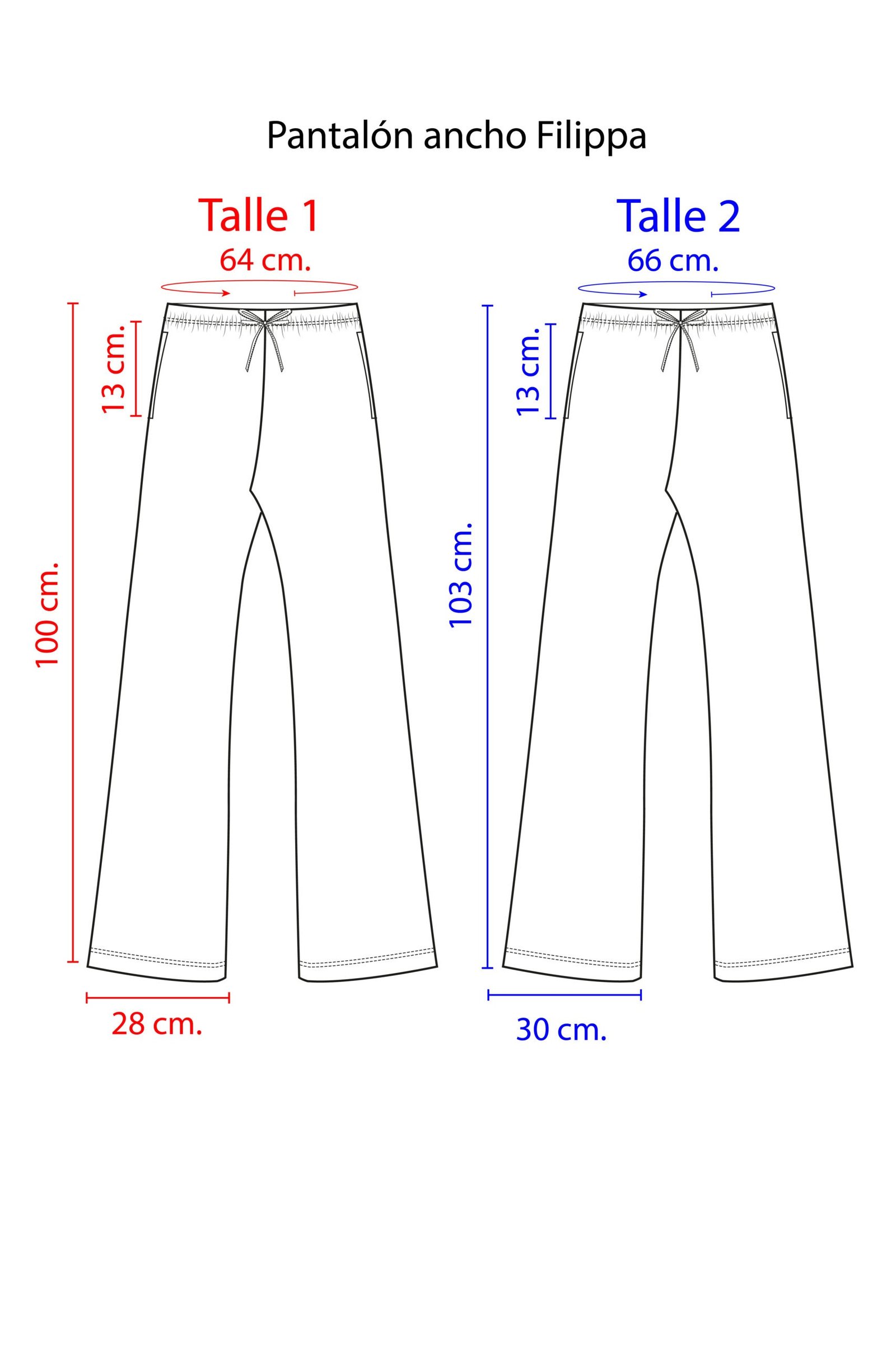 Pantalón ancho de nuestra bambula Filippa. Textil fresco y liviano, muy cómodo! Prenda versatil, ideal para usar en un look de día o de noche ❤️ Disponible en talle 1 y 2, medidas en la última imagen.