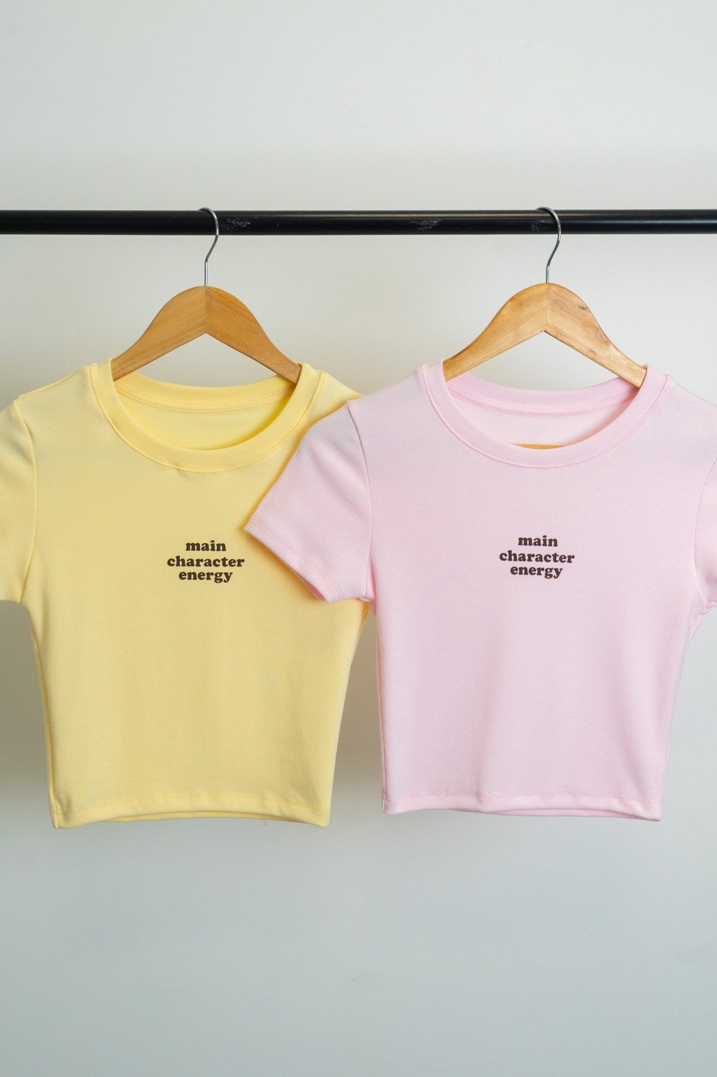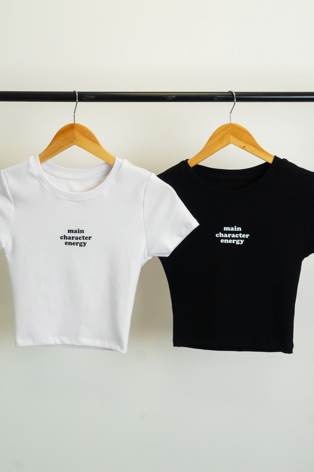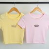Remera corta al cuerpo de ribb con estampa en el frente. Estampa de frase muy canchera y divertida 😄 Talle único.