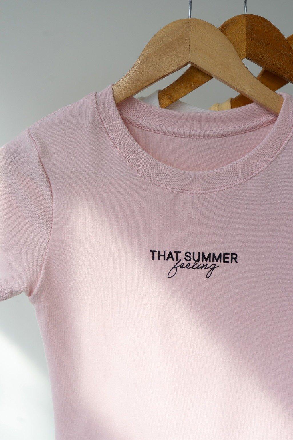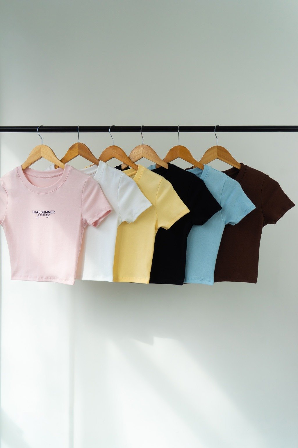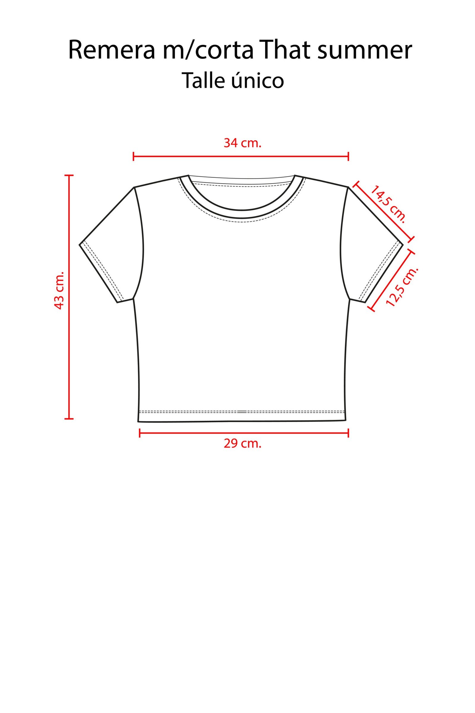 Remera manga corta de ribb al cuerpo. Modelo ideal para las que buscan una baby tee con una estampa más delicada 🙂 Medidas en la última imagen.