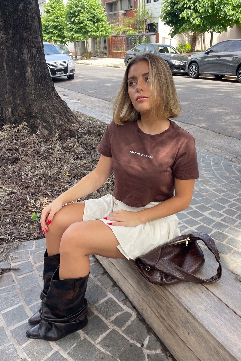Remera básica de jersey de algodón, con estampa en el frente. Básicos que no pueden faltar en tu colección este verano! Talle único, medidas en la última imagen.