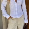 Short sastrero de lino. Tiene cierre a tono, gancho sastrero y botón. Las pinzas y los recortes de este short hacen que tenga un calce perfecto Disponible en talle S, M y L, medidas en la última imagen. Las modelos de las fotos estan usando el talle S.