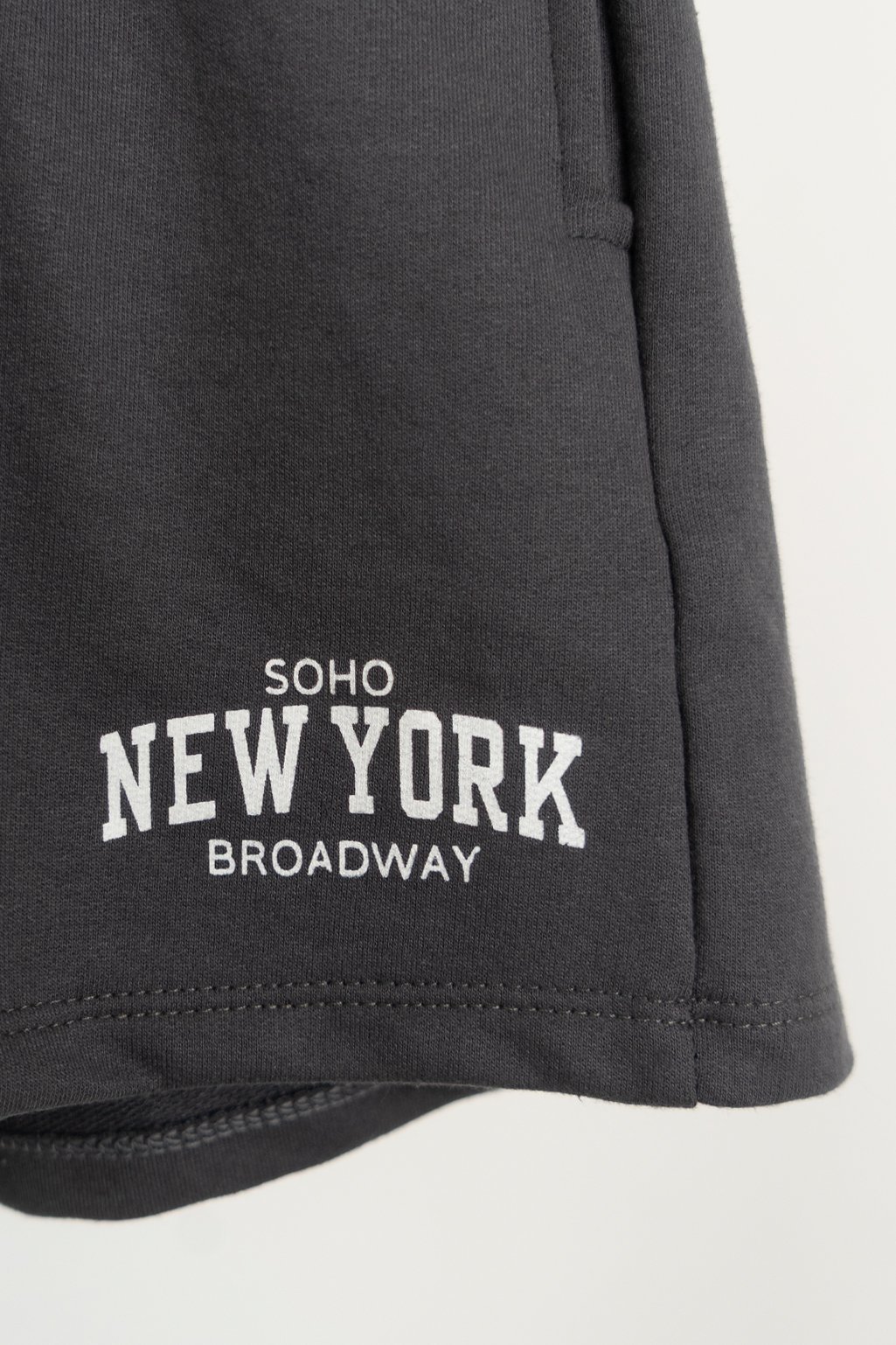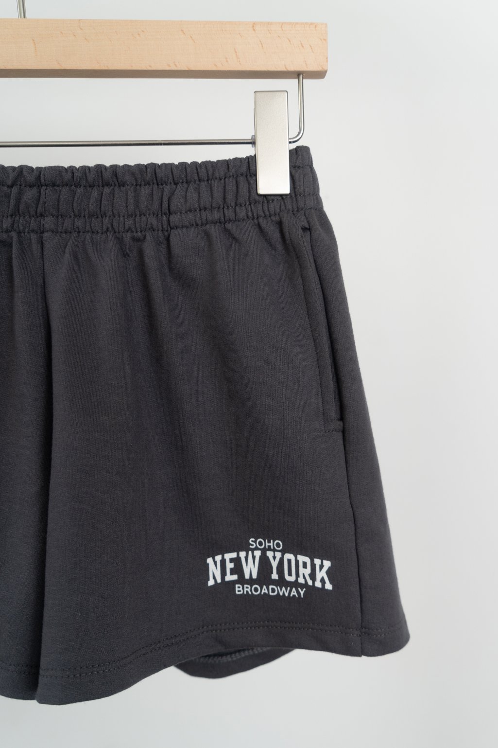 Short confeccionado en rústico de algodón con estampa en el lado izquierdo. Tiene elástico en la cintura y bolsillos. Una opción súper cómoda y canchera para todos los días! Disponible en talle 1 y 2.