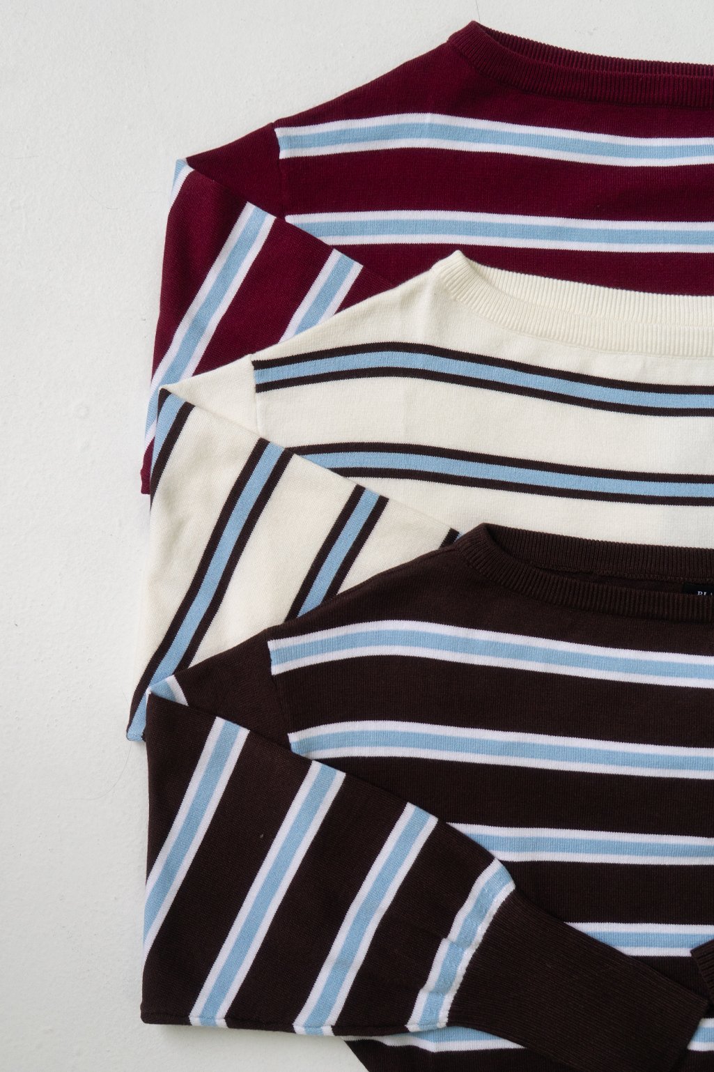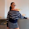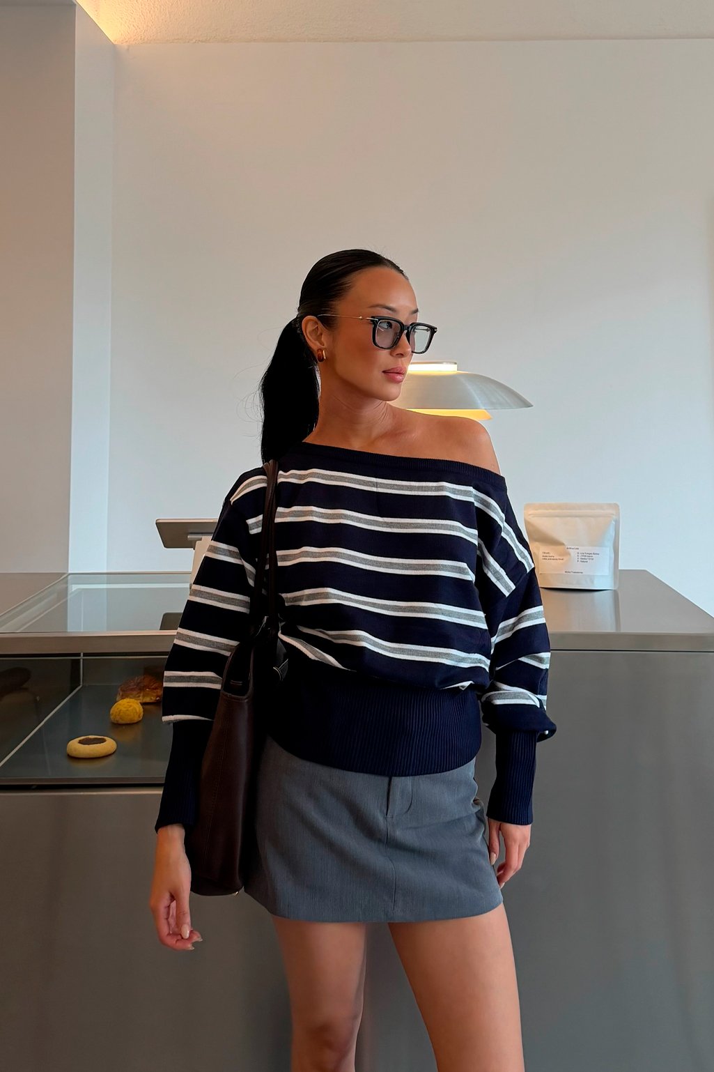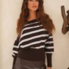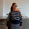 Sweater off shoulder rayado con cintura y puños elastizados que se adaptan al cuerpo. Escote con hombro caido que es tendencia esta temporada, súper canchero 🙂 Talle único.