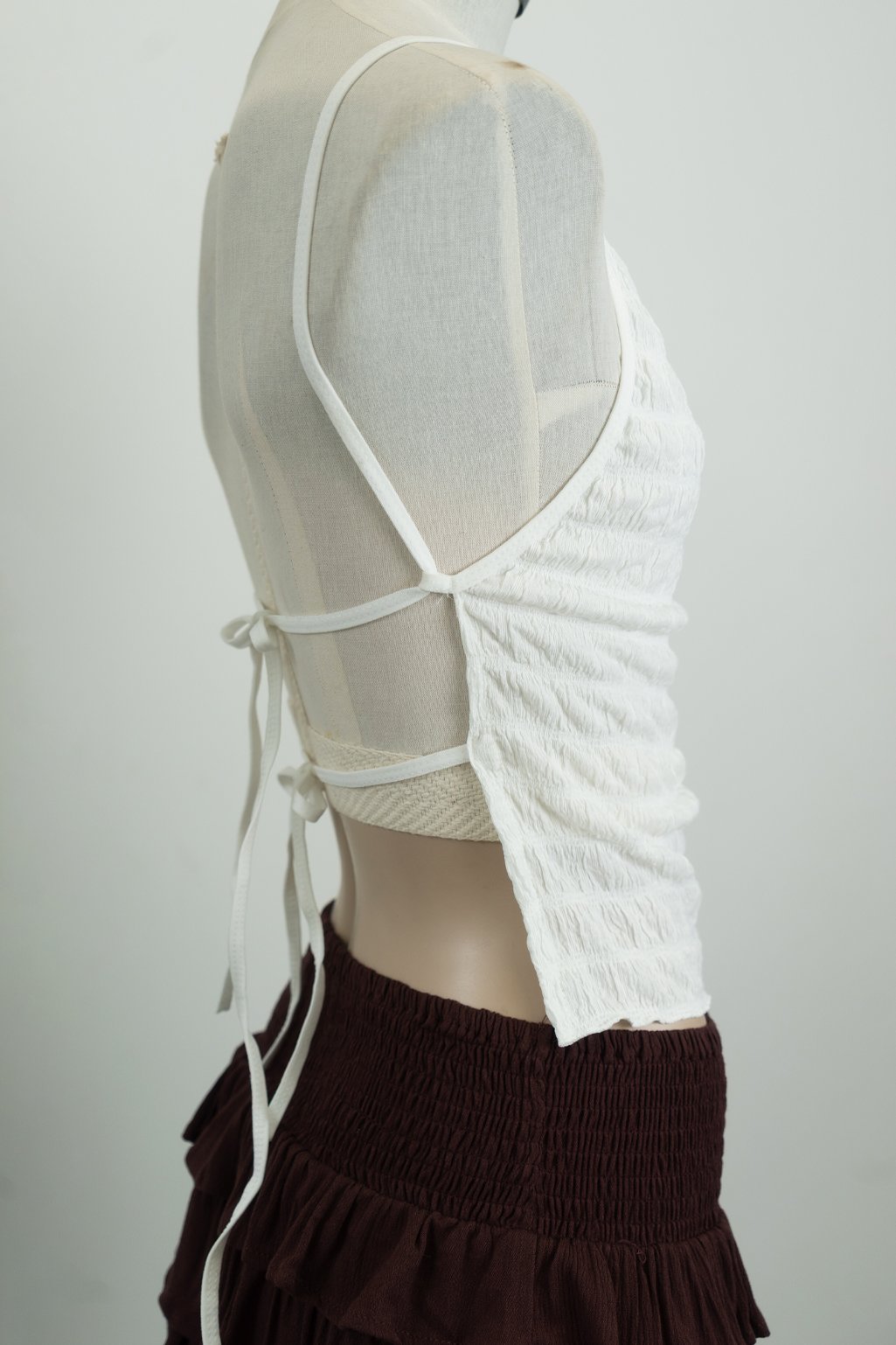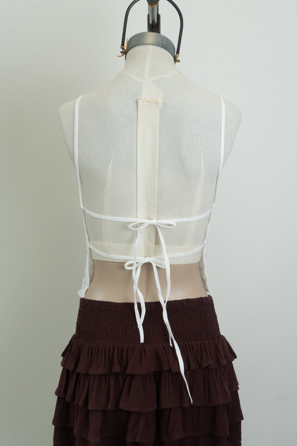 Top de bambula raviol loewe con espalda descubierta. Textil con textura súper fresco y liviano, ideal para la temporada! Se ata en la espalda para que lo puedas regular como más te guste ✨ Talle único.