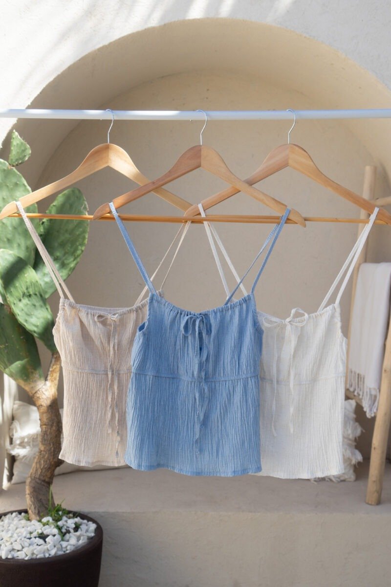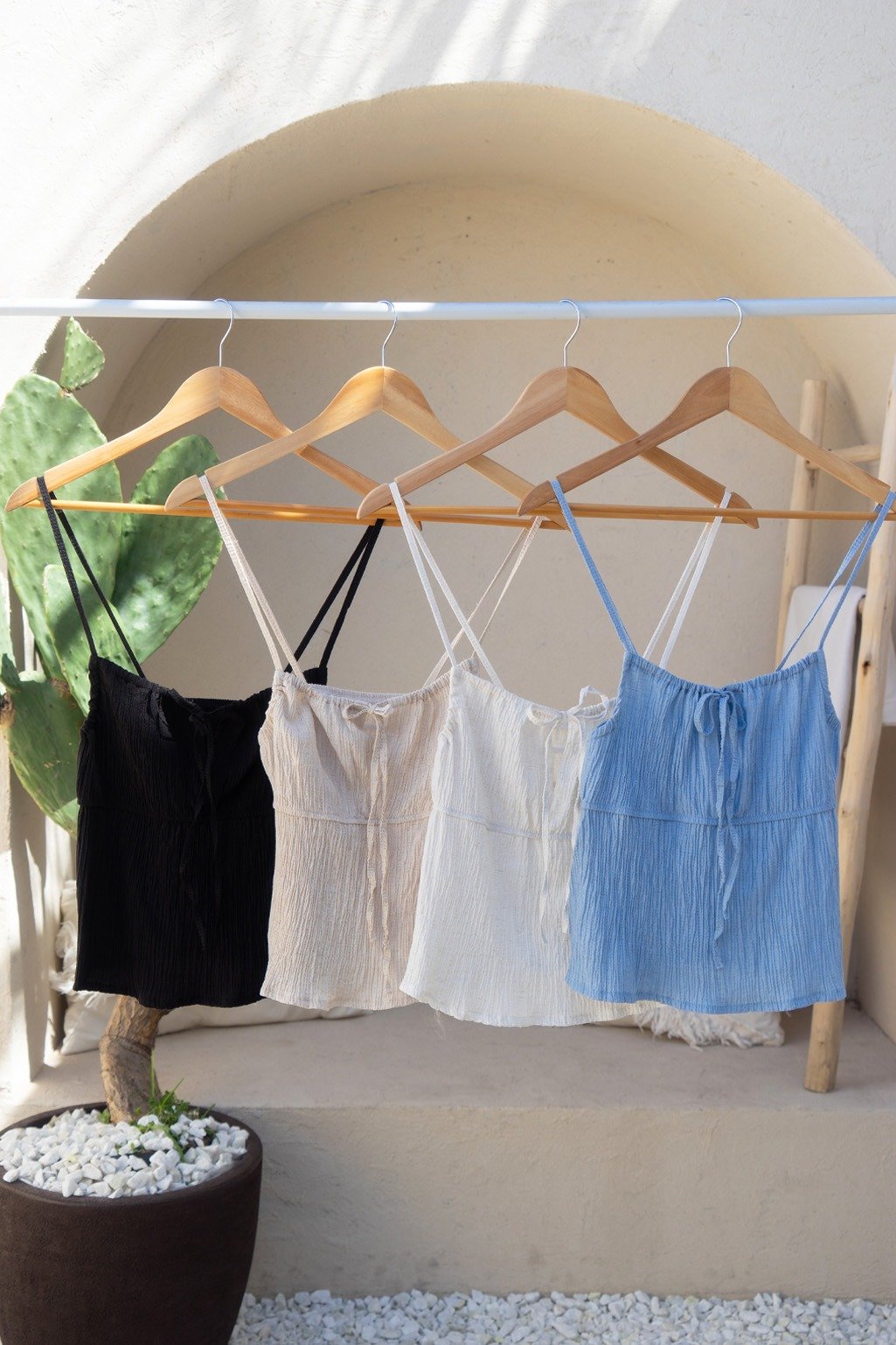 Top de bambula filippa. El escote es regulable mediante el lazo en el centro✨ Textil súper fresco ideal para la temporada! Talle único, medidas en la última imagen.