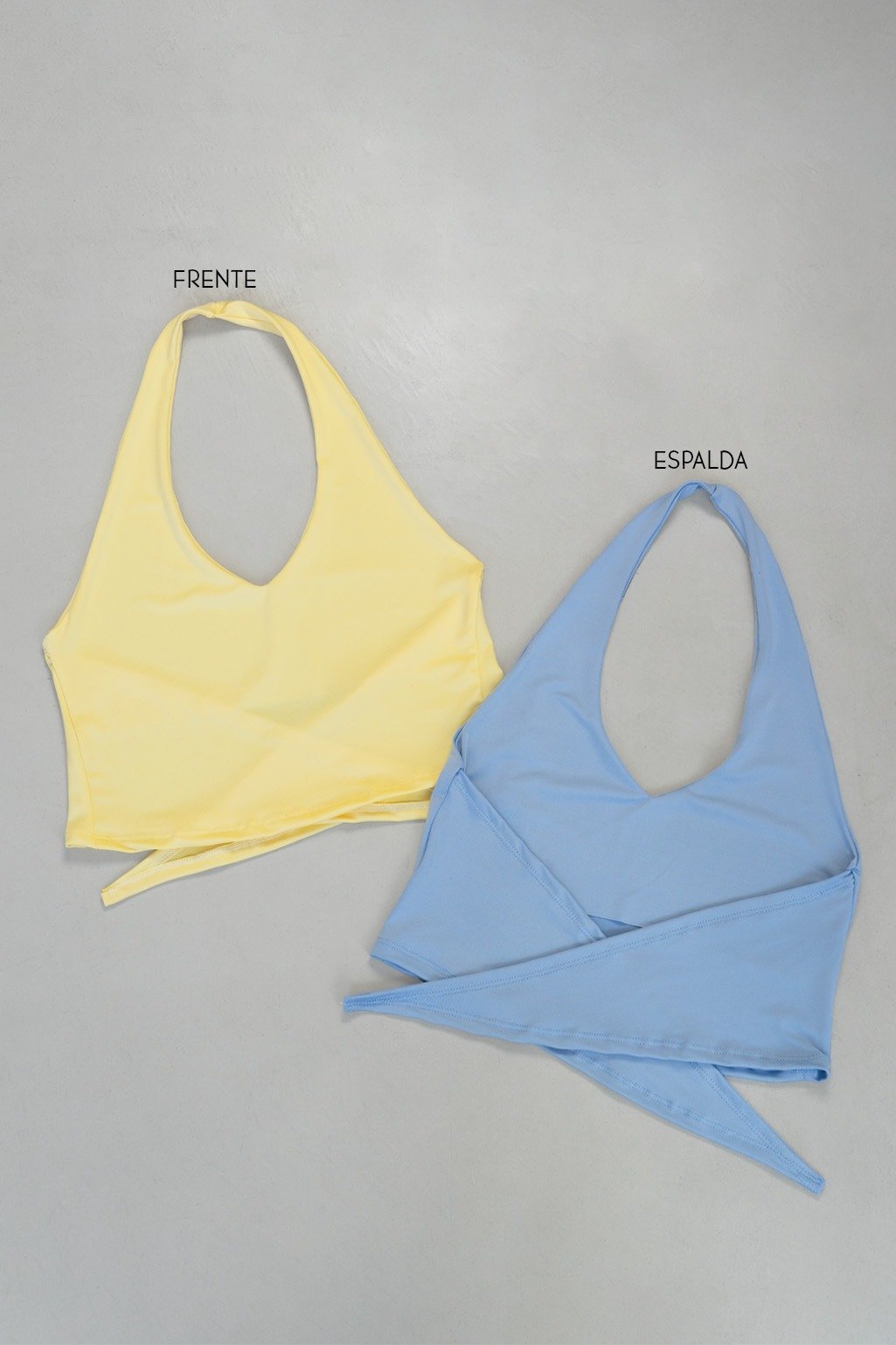 Top de microfibra escote halter, se ata en la espalda 🙂 Tiene doble tela en la parte del busto para mayor comodidad! Talle único, medidas en la última imagen.