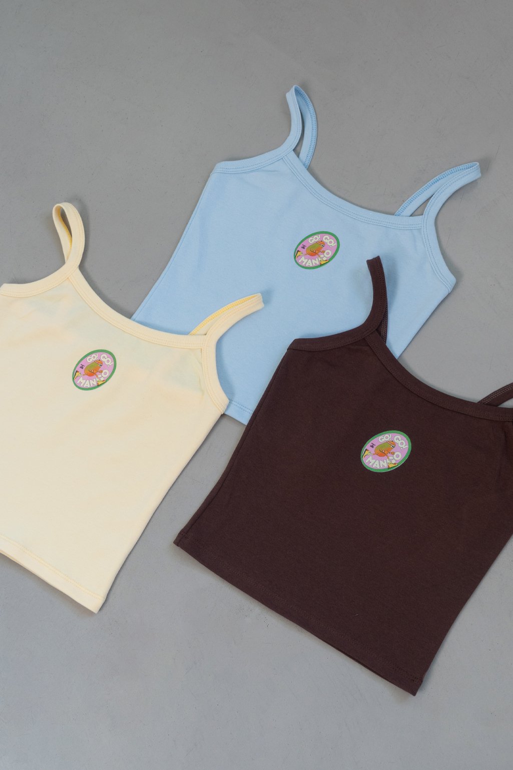 Top de de tiras confeccionado en ribb de algodón con estampa en el frente. Prenda súper veraniega ideal para la temporada 🌞 Talle único.