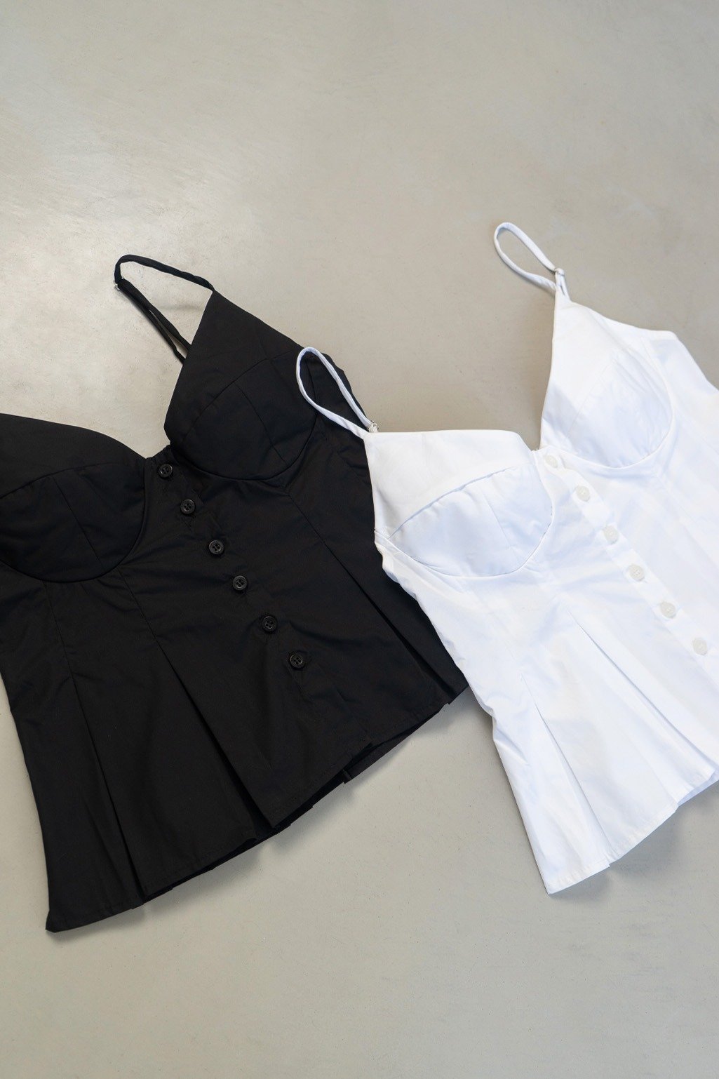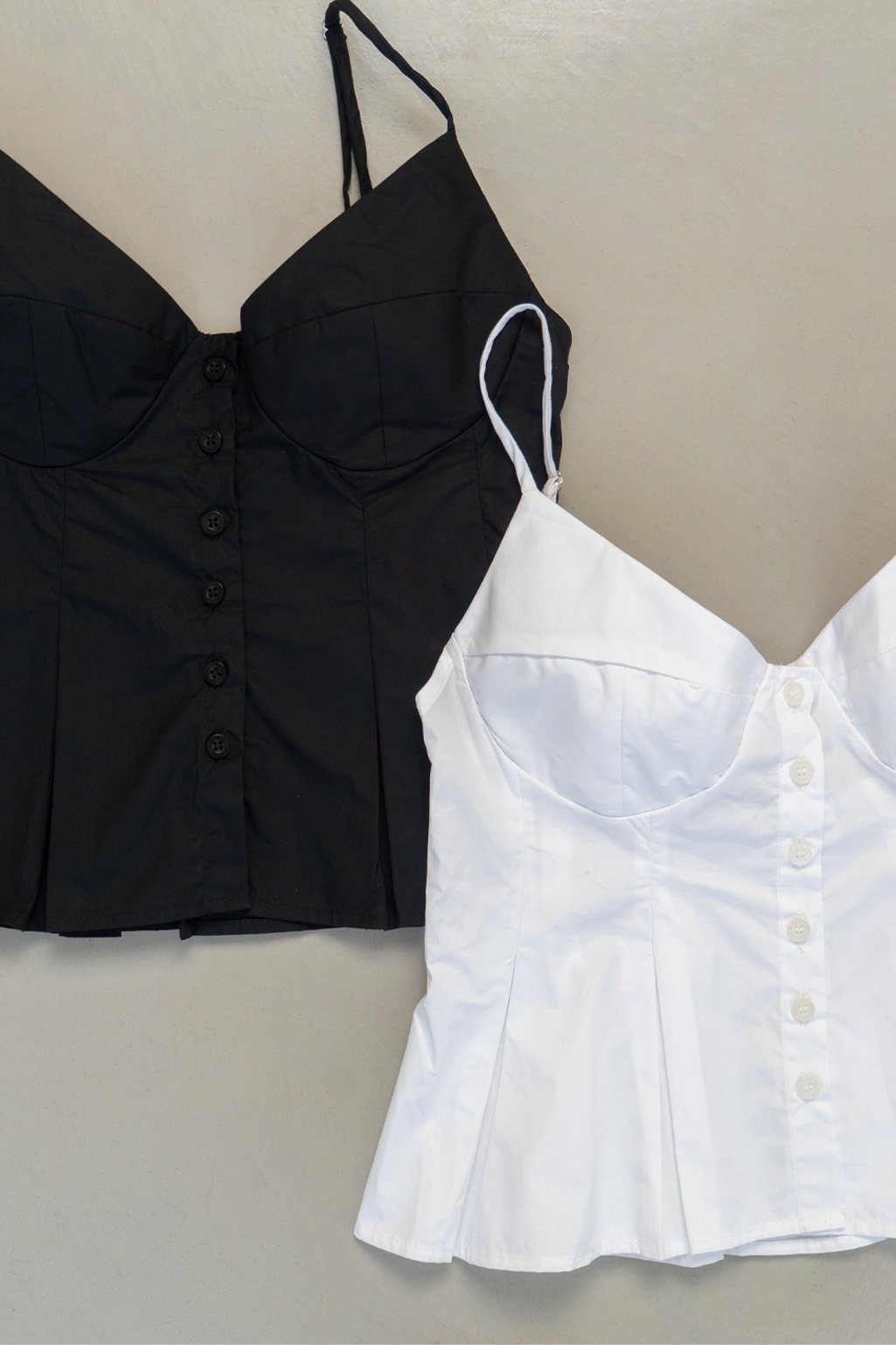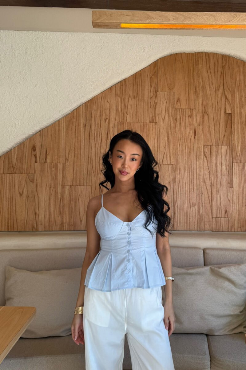 Top estilo camisero, acceso por cartera en el frente con botones a tono. Tiene tazas con recortes para un calce perfecto ❤️ Los breteles son regulables. Terminación en tablas en el frente y la espalda. Disponible en talle S y M, medidas en la última imagen.