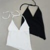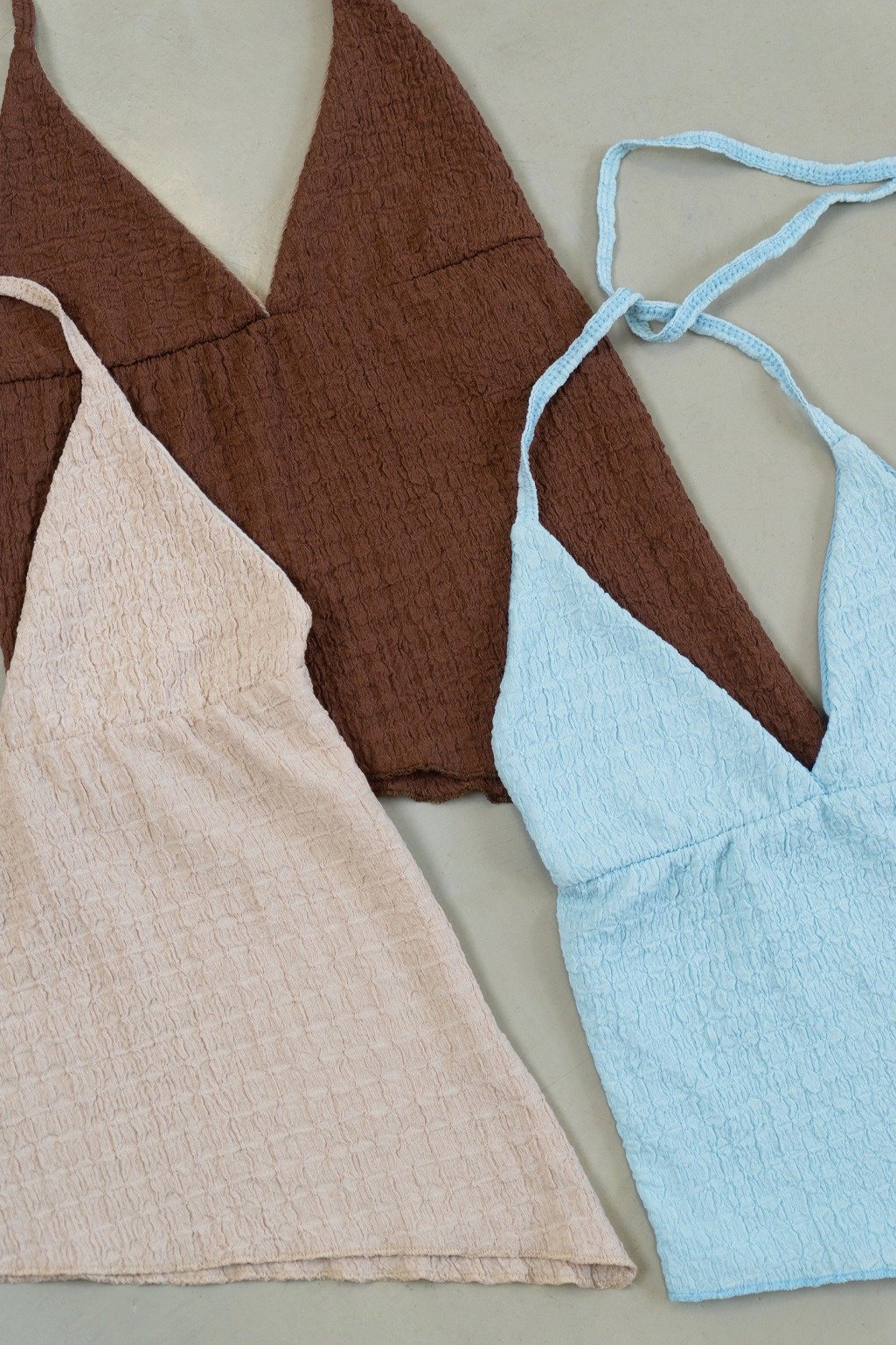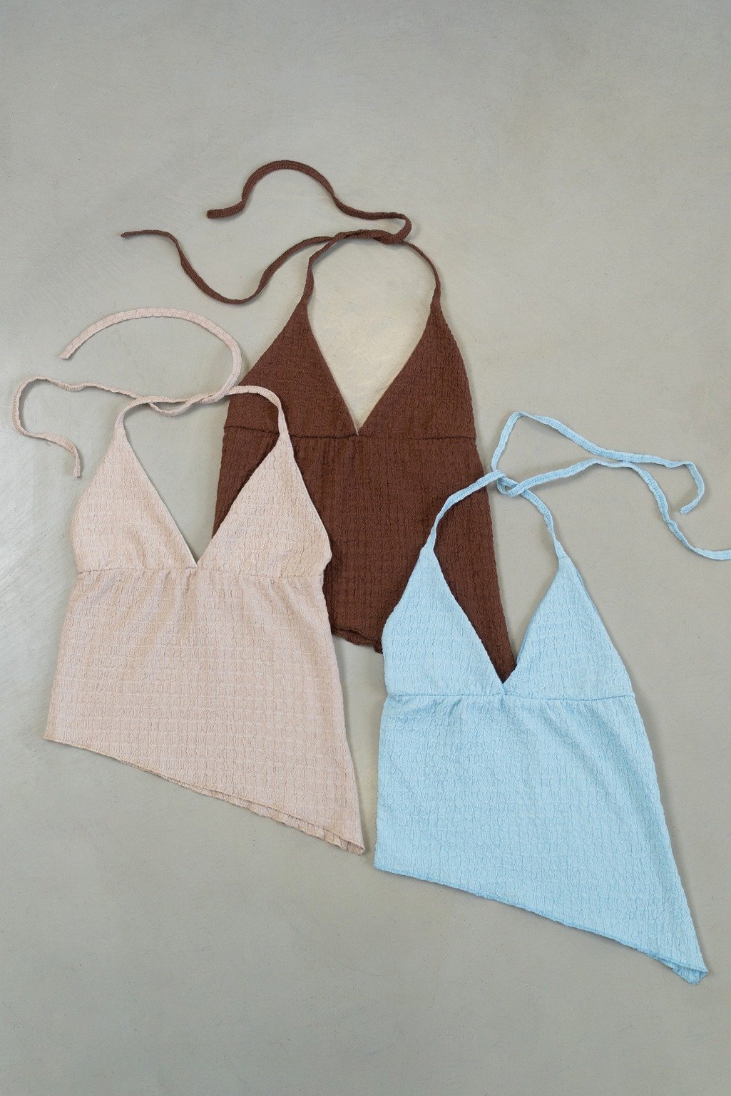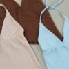 Top de bambula Hawai. Se ata al cuello, lo que permite que lo puedas regular como más te guste! Tiene terminación asimétrica en pico y forrería a tono en la parte del busto. Con la falda o el microshort hawai tenes el look perfecto de verano ❤️ Talle único, medidas en la última imagen.