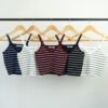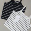 Top tejido musculosa corto. El clásico rayado que no te puede faltar en el verano! Tejido súper elastizado 🙂 Medidas en la última imagen.