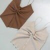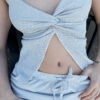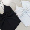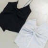 Top con nudo en el centro, confeccionado en bambula rayada Birkin. Breteles a tono y doble tela en el busto para más comodidad ✨ Talle único, medidas en la última imagen.