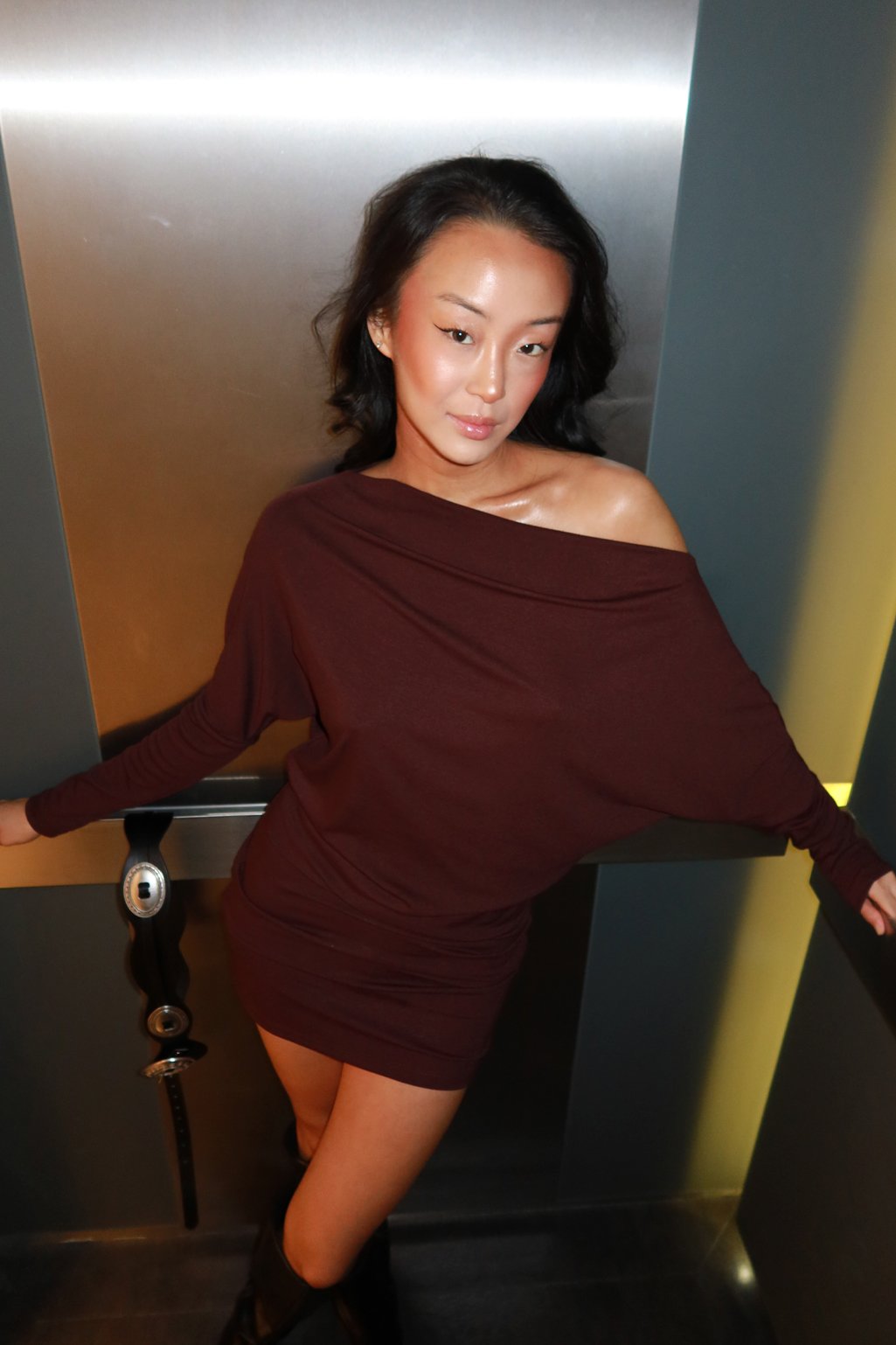Vestido con escote off-shoulder y mangas murcielago. Es amplio en parte superior y se ajusta a la cadera. Un modelo en tendencia, súper boho chic ✨ Talle único.