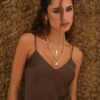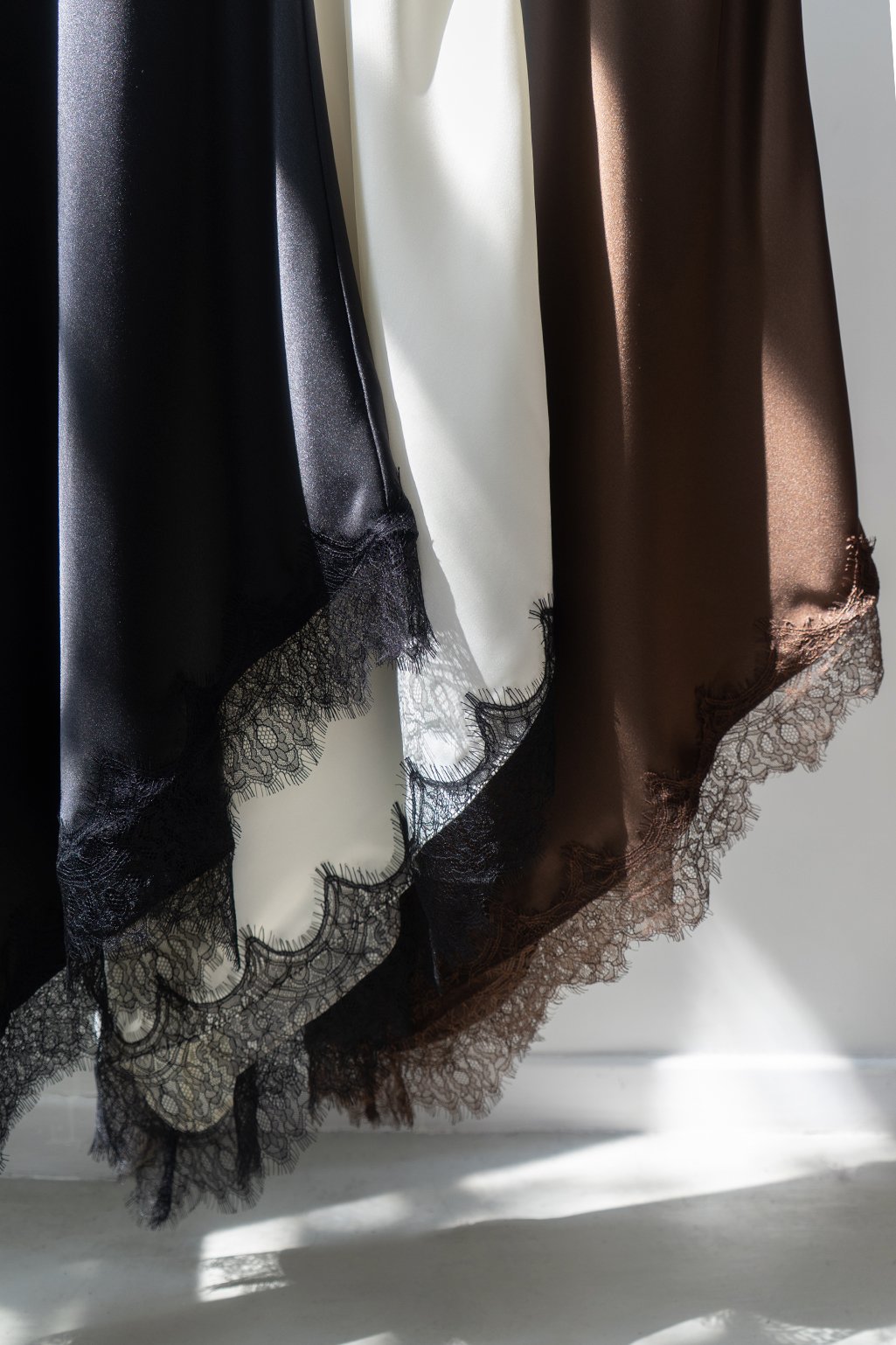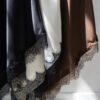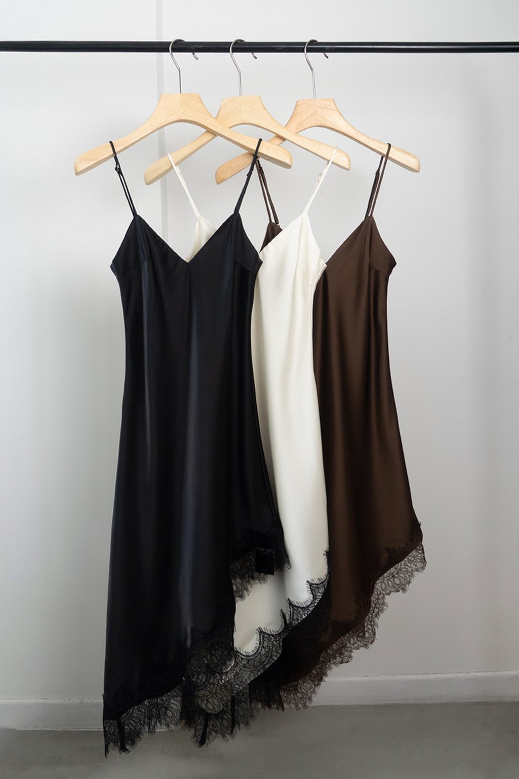 Vestido largo de seda, terminación asimetrica con encaje en la parte inferior. Tiene breteles regulables y pinzas que hacen que el calce sea perfecto ✨ Disponible en talle S y M.