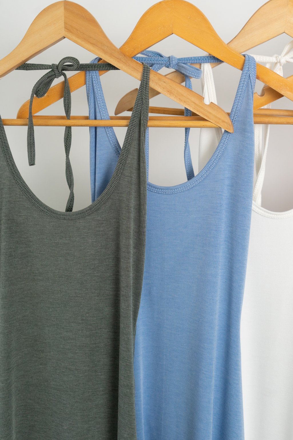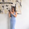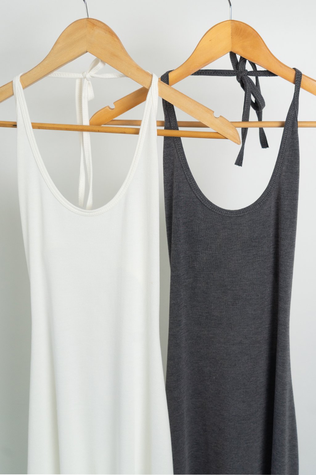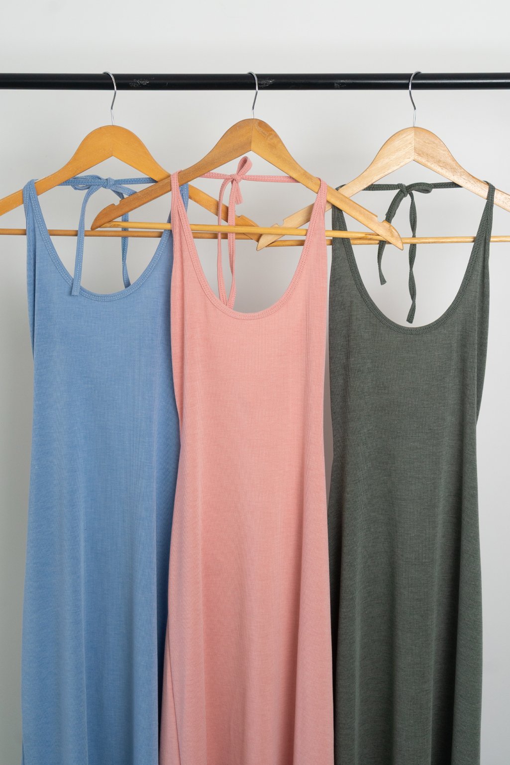 Vestido largo con espalda descubierta confeccionado en morley hummer. Se ata en la espalda y en el cuello lo que hace que lo puedas regular como más te guste! 🙂 Talle único.